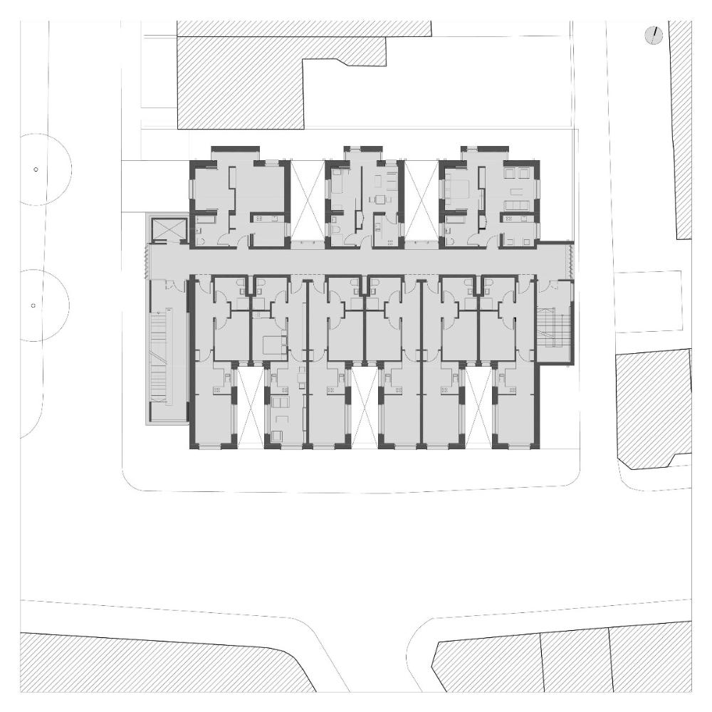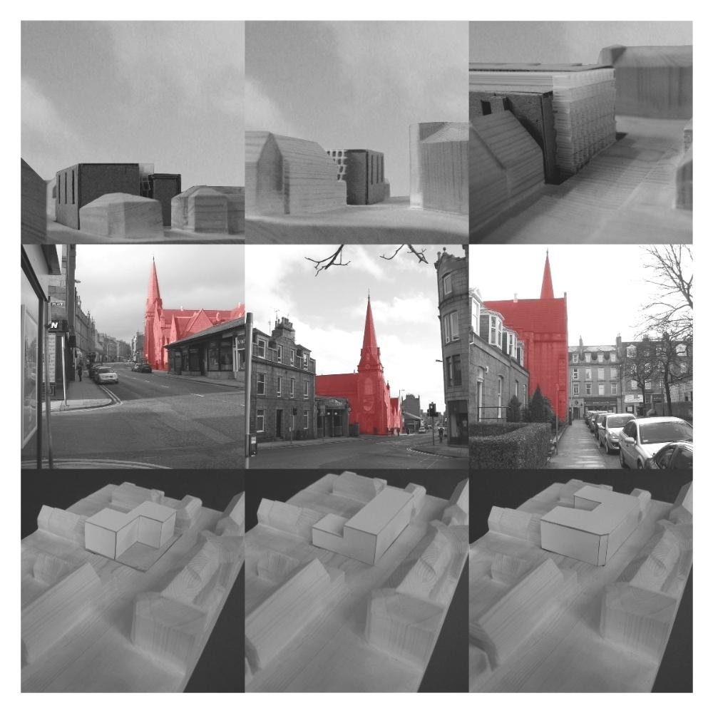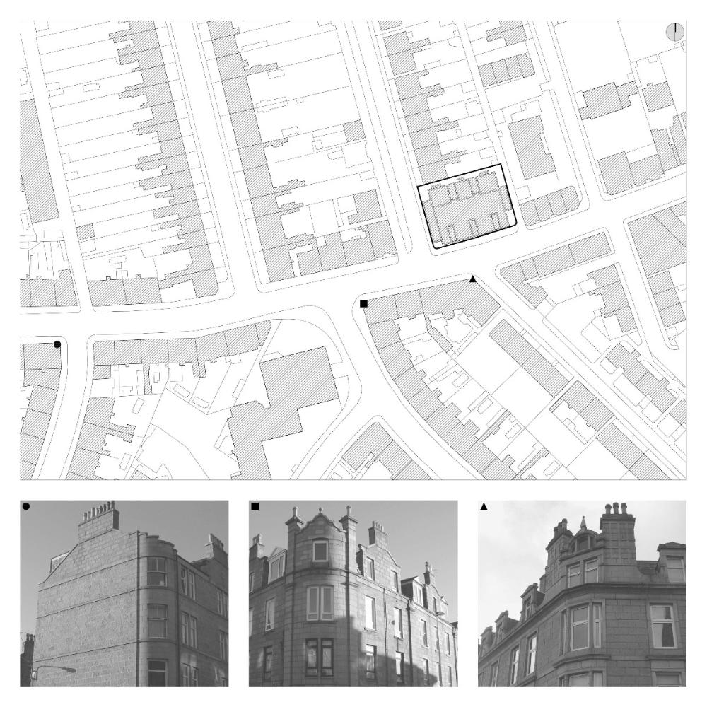 Mixed Use Urban Block Part 1 Project 2011 Alexander Cameron Robert Gordon University | UK Analysis of the site’s local urban environment highlighted the mixed-use pattern of occupation that has become integral to the Rosemount Area of Aberdeen City. The site is located on the periphery of the city centre at the historic heart of the Rosemount Area. In addition, the site holds a prominent position along the area’s principal axis of circulation, which also provides a platform for the majority of the area’s commercial and social exchange. Local amenities are plentiful and offer the elderly residents an accessible means by which to maintain social interaction and engage with the local community. The proposed mixed-use urban block aims to reinforce the established urban usage that the immediate area hosts. At street level is an adaptable collection of commercial premises, and above is a collection of sheltered housing apartments. At basement level is car parking and additional storage space for each apartment, and sufficient space for a communal heating plant. All apartments are accessed via a principal staircase which leads onto a central corridor that serves every apartment on each floor. These communal spaces seek to encourage informal meeting and social acknowledgment between neighbours. Spatial composition, material, and admittance of light through the external voids which penetrate into the depth of the building, are the primary elements by which it is hoped that feeling is roused with the individuals using and living within the proposed building. Surrounding buildings of comparable prominence demonstrate a carefully refined treatment of the elevation where a junction between the principal street and an adjoining street occurs. This apparent adornment of corner junctions in the immediate area, has informed the conception of the proposed urban block as a building that presents two distinct spatial volumes - the urban block containing the accommodation, and secondly the adjoining u-channel glass element containing the staircase. These two volumes culminate at the principal street corner which the site addresses, and seek to heighten the experience of transition as one passes from the adjacent thoroughfare into the privacy of their apartment. Tutor(s) Samuel Penn
