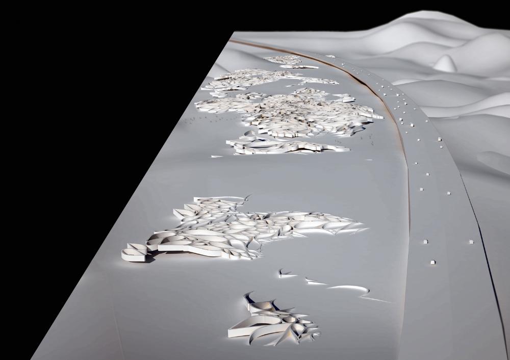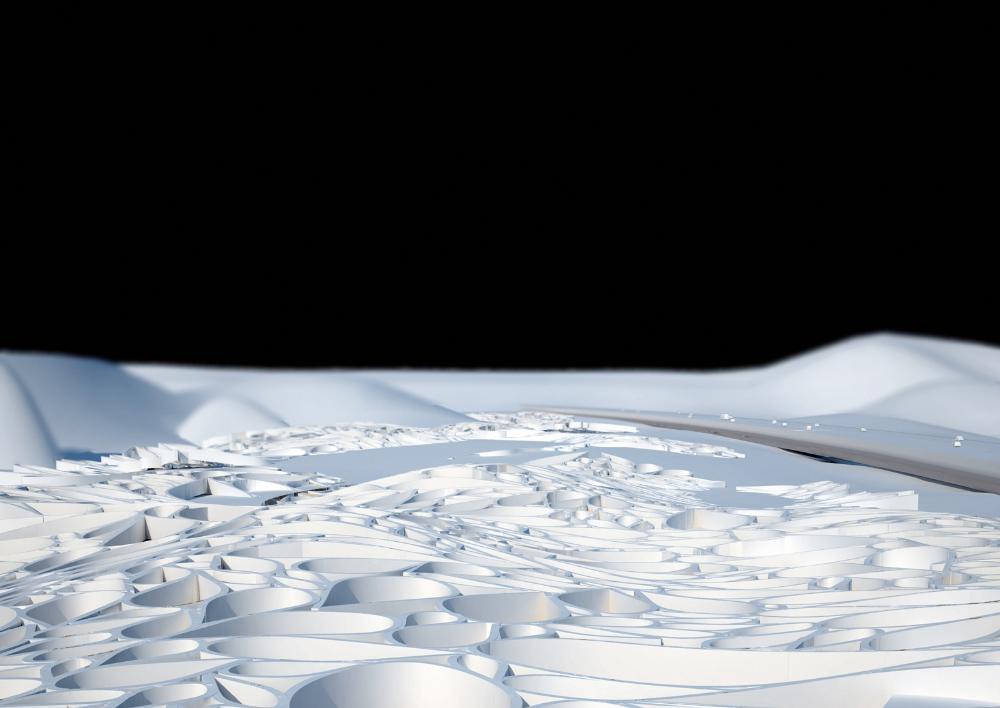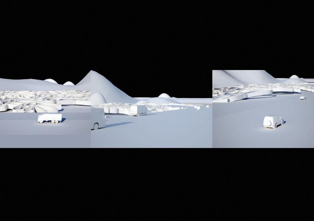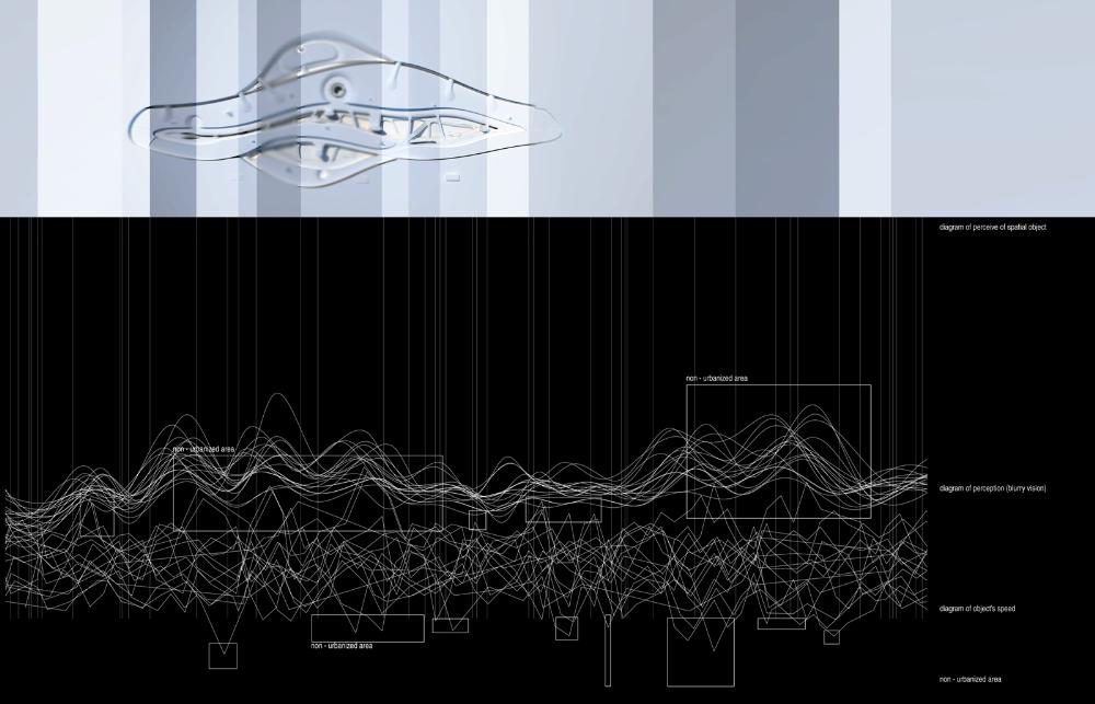 Body of landscape as a perception of speed, based upon ‘Speed and politics’ by Paul Virilio Part 2 Project 2011 Przemyslaw Kolodziej Wroclaw University of Technology | Poland Stasis is death, the general law of the world. The State – fortress its power, its laws exist in places of intensecirculation.‘Speed and politics’ P. VirilioThe main purpose of this thesis is to combine three notions into one spatial object: speed, perception and a landscape.Based upon Paul Virilo’s essay Speed and Politics, speed is perceive in two ways: as a causing factor of changes of culture and civilization, and as a issue of (de)urbanization, which prepare ground for new spatial objects (spaces).The author presents an analysis of highways as space objects, and defines supraobject (supra - above) as a separate category of space, describing structures attributed with their own space autonomy in relation to their context, and separate jurisdiction accompanying their use, to which the author includes highways as well. Definition of supraobject is developed with a support of the analysis of abstract work from conceptual architecture discourse titled Continuous monument, issued in 1969 by design group Superstudio, and then the synthesis of those two is made by creating a description of an object named: a body of landscape.The author’s idea is to analyze the landscape as human body (seen as a phenomenology perceive of senses, not as an geometrical objects). Phenomenological description of body, sees a landscape as a living form having his own dynamics, facture, temperature, sensuality, etc.The author finds that the perception of landscape and any spatial objects, is depended on the speed of moving observer. If the observer moves faster – the perceived details are replaced by the mass of the objects (blurry vision effect). Every subject on the highway is involved to be apart of multiple relations between speed, perception and moving landscapeA body of landscape, by author's definition is a continuous megastructure, fulfilling space paradigms of the supraobject (space continuity, space autonomy, internal jurisdiction defining the way ofusing). Conclusions were a basis for designing heterotopical space: a hypermall. The object located only in the close context to the highway, became a endless line of an artificial horizon for all subjects using the highway. Tutor(s) Jacek Kotz