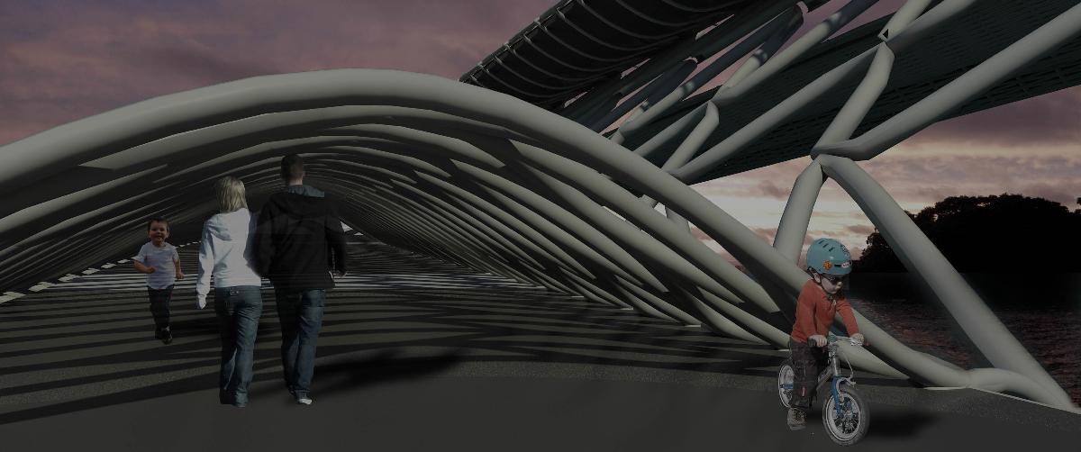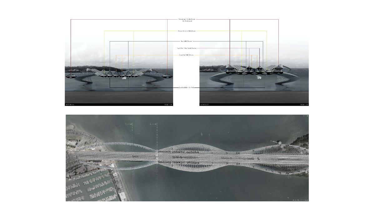 Pluraform Studio: The Trussen Bridge Part 1 Project 2012 Jaime (Ting Yan) Kwan University of Auckland Auckland | New Zealand Acting as Auckland City’s icon for the past 50 years, the Auckland Harbour Bridge has become one of the critical transport links between the North Shore City and the central business district. However, with the exponential growth in the economy and population, the existing AucklandHarbour Bridge can no longer accommodate the daily traffic demands and the changing lifestyle perceptions in Auckland.In order to cope with the increasing traffic demands, the Trussen Bridge will accommodate 4 light rails, 4 bus lanes and 8 vehicle lanes. Addition to the primary traffic routes, pedestrian and cycling routes have been implemented into the design to promote the idea of outdoor leisure and to increase green spaces around an increasingly urban city where land is primarily utilized for upscale commercial projects.In addition to its role as a transport infrastructure, the Trussen Bridge is reminiscent of a floating city above the Waitemata Harbour. Housing recreation programmes such as cafes, restaurants, green boulevards and fitness centers, the Truseen Bridge will act as a connection between the two urban centrals in Auckland; the existing CBD and the expanding North Shore City. Tutor(s) Derek Kawiti Patrick Loo