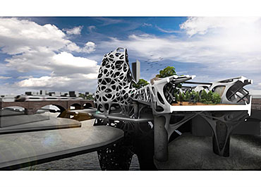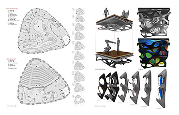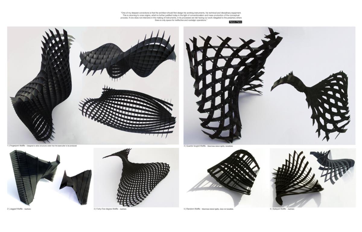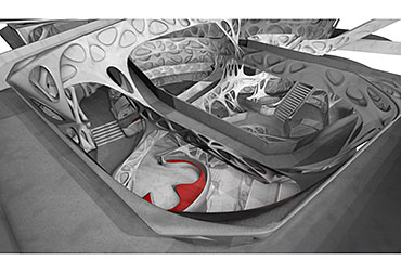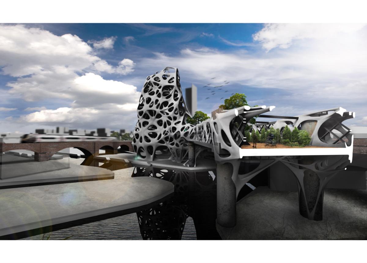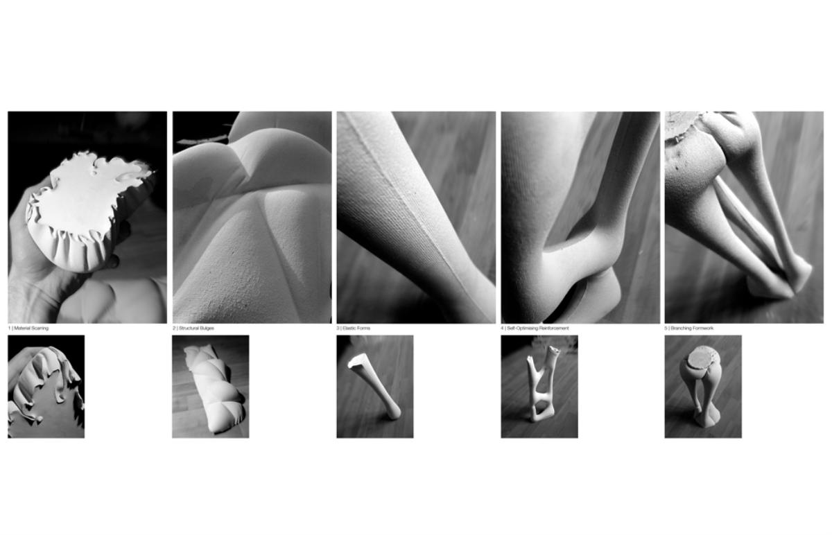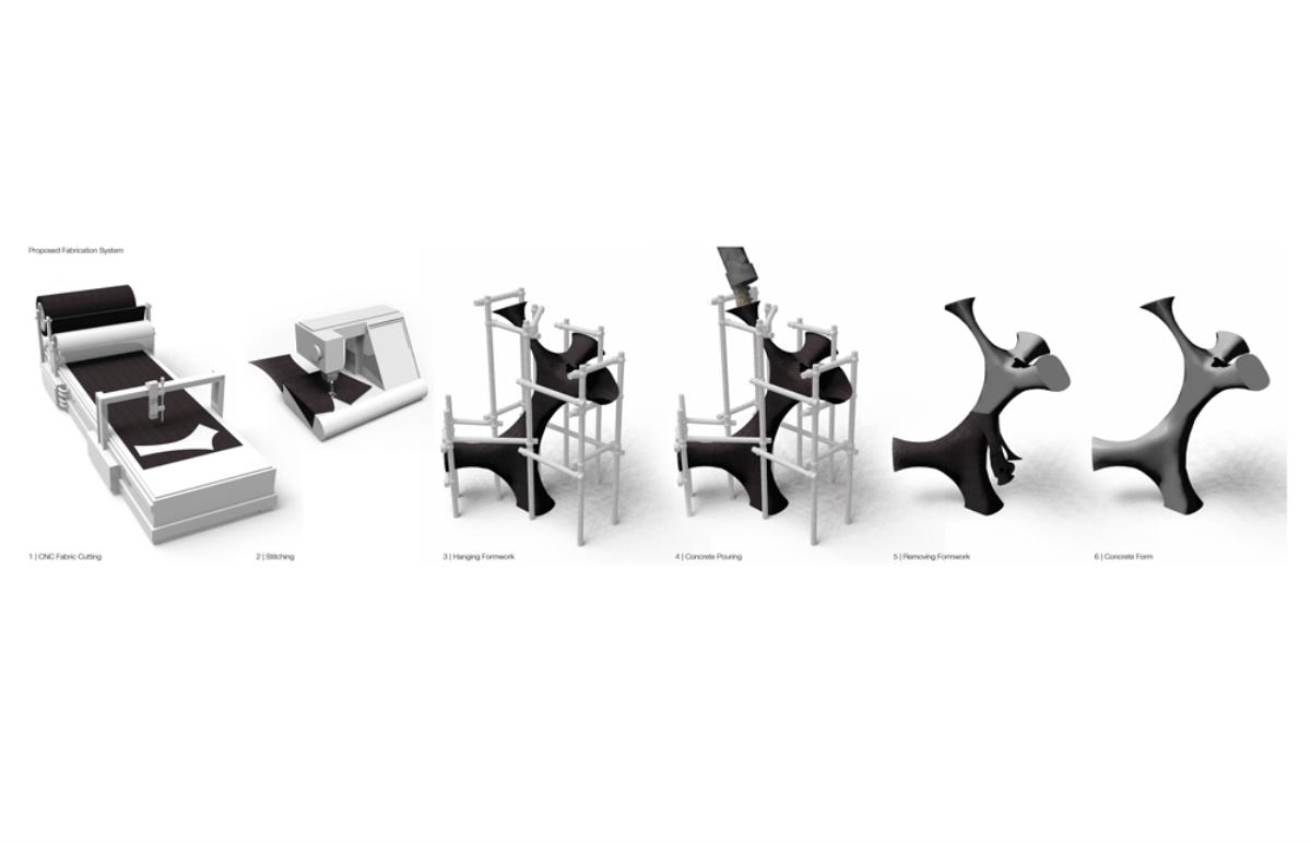 Fabricari Part 2 Project 2012 Nick Tyrer Leeds Beckett University | UK Heinrich Wölfflin recognized tectonics as the particular manifestation of empathy in the field of architecture, it is how as humans we understand buildings, how we measure ourselves against architecture.With contemporary architects shying away from the tectonic act of making and constructing. Investing instead in the image and its rhetoric. Architecture has steered away from construction, almost becoming assembly. The mass production of structure, windows, doors and all type of coverings, limit the architect, creating largely repetitious, homogenous and sterile environments. Assisted by the universal adoption of the free façade, that diverts the tectonic forms of force. Creating surface architecture, where meaningful discourse gives way to strategies of seduction, and architectural design is reduced to superficial play of empty, seductive forms. My intention was to research mass-customised fabrication techniques, as a driver to develop an architecture that recognizes the importance of structural forces and material composition. The project began with the creation and development of many different systems, each as an advancement or response to different parameters.Fabric formed concrete was chosen to develop after identifying the current limitations with using rigid formwork. Starting by simulating tension to generate accurate formwork, casting plaster prototypes at each stage to test limitations and precision. Generating a structural skeleton based on biomimetic principles, and optimising the final structure according to local optima. The program embodies the polemic of my thesis, creating a Fabrication Institute situated in Castlefield. Uniting Castefield’s unique heritage as the cradle of the Industrial Revolution and Mass Production with Manchester’s Computational Innovation. It will now become home to the new computational revolution, mass customized fabrication and construction.The resultant design is a monolithic non-linear network of concrete branches and slabs. Scars of the construction process are implicit in the surface of the building. The internal forces of the concrete manifest themselves in the fluid massing of the surface. Walkways and ramps meander through the building, creating spaces for spontaneous interaction and collaboration with other Institute users. A rich variation of details, texture, light and spaces forge a holistic sensory experience and create awareness of the role of tectonics in architecture. Tutor(s) Keith Andrews