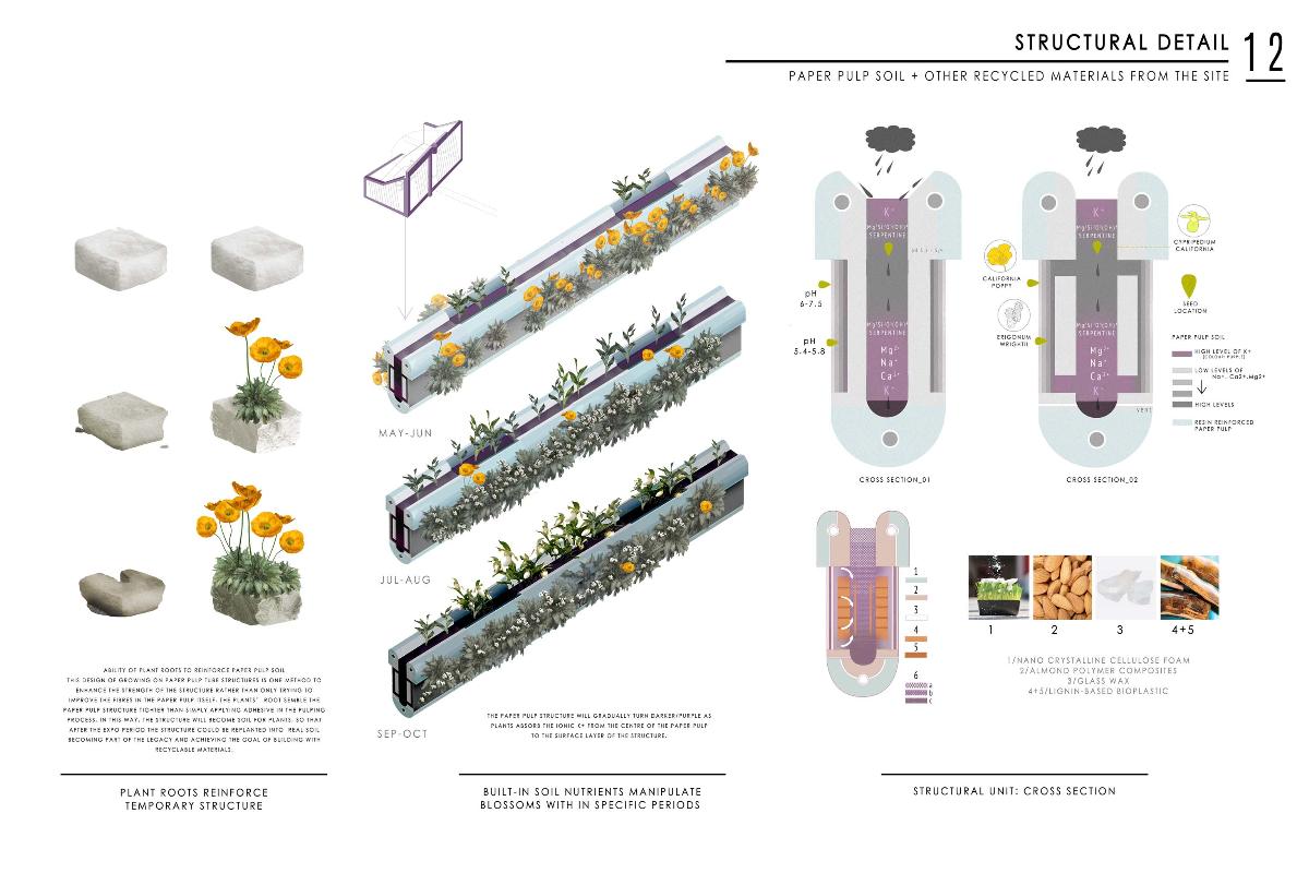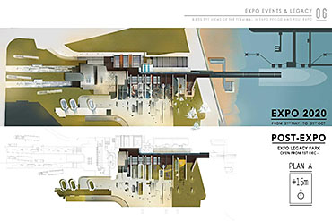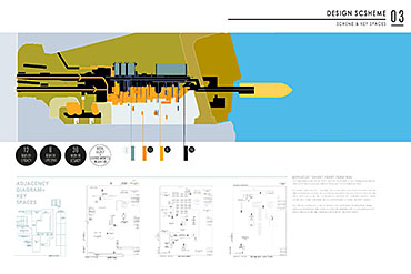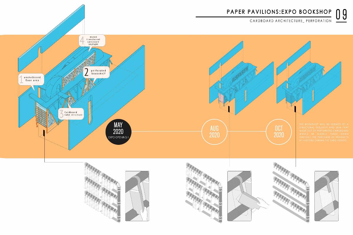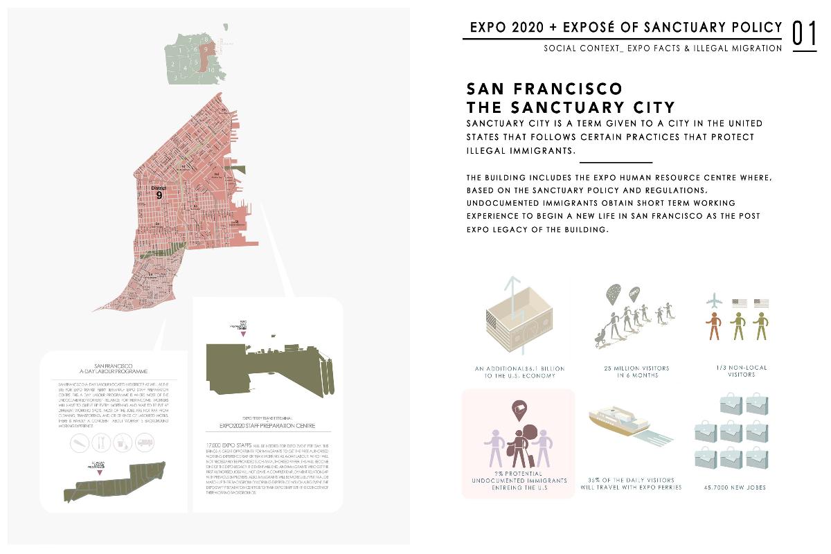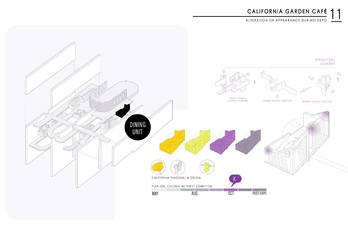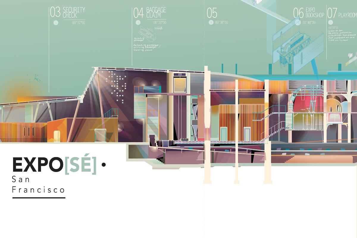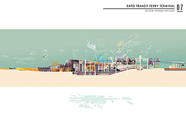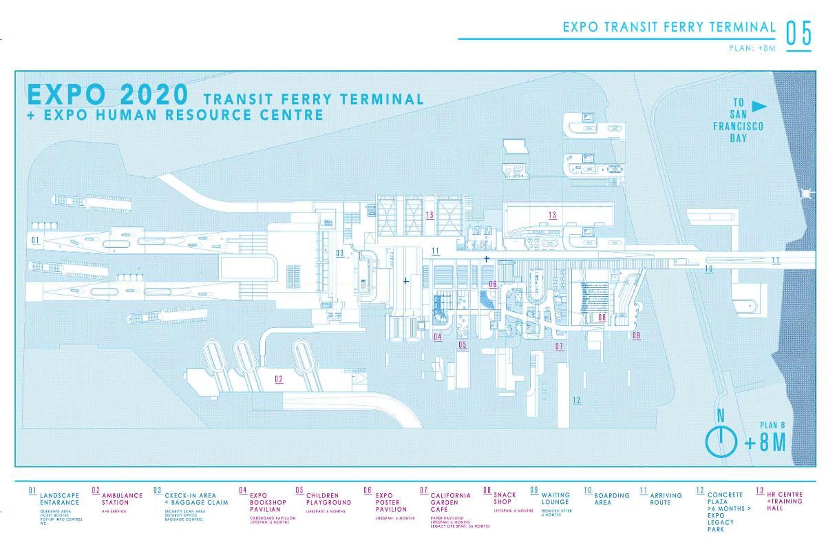 EXPO[SÉ]: S.F. Expo 2020 Transit Ferry Terminal Part 1 Project 2012 Brook [T.J.] Lin The Bartlett School of Architecture, UCL | UK In 2020 Silicon Valley had hoped to hold an International Exposition, which would have been the third such event in the San Francisco area’s lifetime. The Bay Area is now investigating an application for Expo 2025.An international event series held in the interest of promoting national assets; technological, cultural and economic, the built construct of the Expo has historically provided a playground for architectural innovation; the individual pavilions of the fair exemplars of experimental and speculative systems for the built environment. The fair exists in a dichotomy - temporary pavilions embody proposals for lasting progression, bringing into question the notion of the event, and its legacy.In response to the sudden surge in demand on the city’s transportation infrastructure, the project proposes a Ferry Terminal for the anticipated Silicon Valley Expo 2020, serving visitors travelling from the east coast of the Bay Area to the proposed site in Moffett Federal Airfield. The building experiences two conditions; providing temporary pavilions and a semi-permanent landscape for tourists in the spirit of the fair during the 6 month Expo period, woven throughout a permanent ferry terminal, a lasting intervention in the city following the events closure. Each temporary pavilion responds to the influx of passengers, gradually transforming and eventually disassembling as the event draws to a close - the inevitable temporality of the event intrinsic to way people engage with it and its materiality.Driven by experimentation with plentiful and easily attainable short-lifespan materials, such as cardboard and paper, and playful interpretations of temporary construction techniques, the building proposes an alternative to the wasteful and inefficient use of unsustainable materials typical of the Expo. Its considered breakdown into component parts begins a process of reassembly and re-application for the sites post-Expo life as the momentary hysteria of the event passes and the building settles into the urban fabric of San Francisco. Tutor(s) Ms Ana Monrabal-Cook Luke Pearson