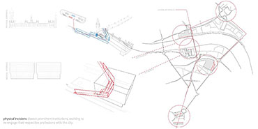 Parallel Cities Part 2 Project 2012 Charles Critchell University of Brighton | UK “Pockets of our Society are not just broken but frankly sick” PM David Cameron speaking after the August riots.Taking the August riots as a starting point, the project firstly aims to question the effectiveness of the current combined responsive model for dealing with incidents in the city. The project speculates on how an alternative design led urban strategy could be used to challenge this currently ineffectual system in the specific context of Elephant and Castle, and more broadly, central London. At present the responsive ‘biomedical model’ manifests itself in the city through the rigorous medicalisation of the urban realm; bus priority seats, clinics, surgeries and repeat ambulance callouts are all evidence of this. It became evident that a recurring number of these callouts were located at five key infrastructural sites across the city, including Waterloo Station and Elephant and Castle itself. More interestingly the nature of these incidents presented as being predominantly social, dealt with however, by the current combined responsive forces of medicine [ambulance] and politics [police]. Direct intervention at three of these five sites suggested that rather than making people better through intense medicalisation, it is actually the city, its tired infrastructure, along with its disengaged institutions and professions, which is making people sick.The unregulated presence of the medical and political institutions for addressing social incident in the city brings in to question the role of their respective professionals, alongside that of the architect in relation to the two. Rather than the current combined approach, it seems logical that a social incident should necessitate a social response, which could come in the form of a viable design based alternative.The development of a layered civic infrastructure, consisting of a series of new and reconfigured public spaces and built interfaces across four key sites, expands the realm of the social within existing institutional types. In addition to making the city healthier and more streamlined with the opening up of new public spaces, the infrastructure facilitates a new social discourse between public and professional, in turn encouraging both greater public responsibility and professional accountability. Tutor(s) Alex Warnock-Smith