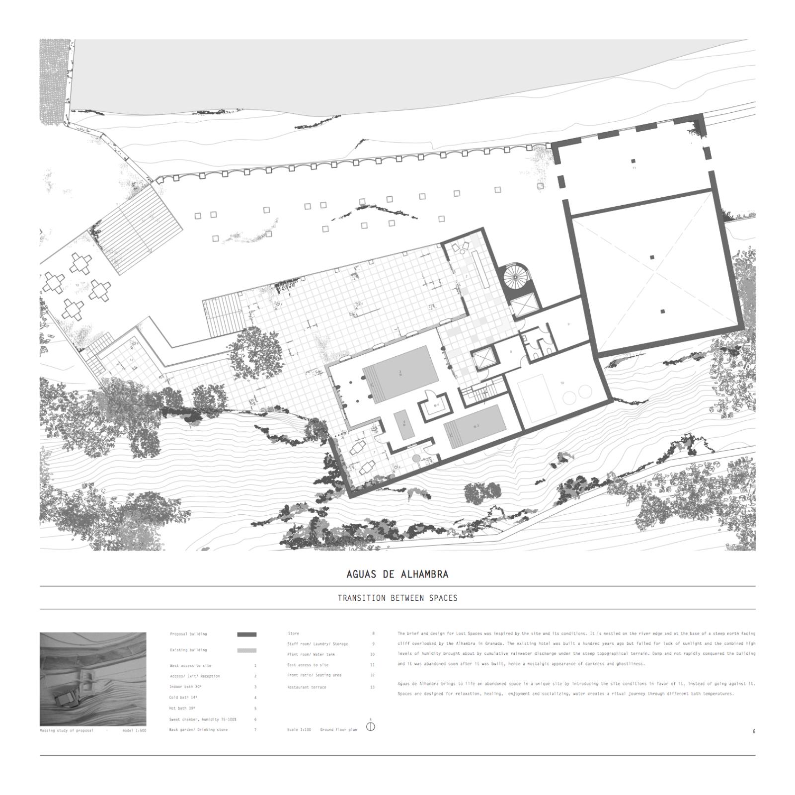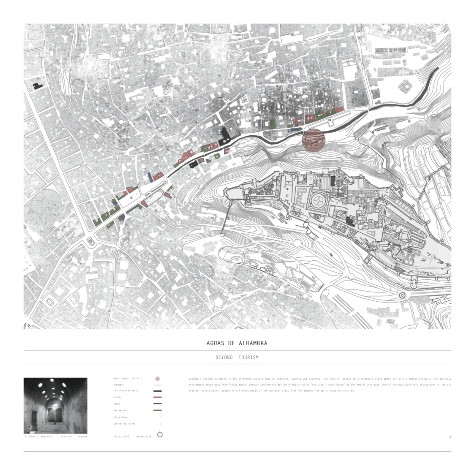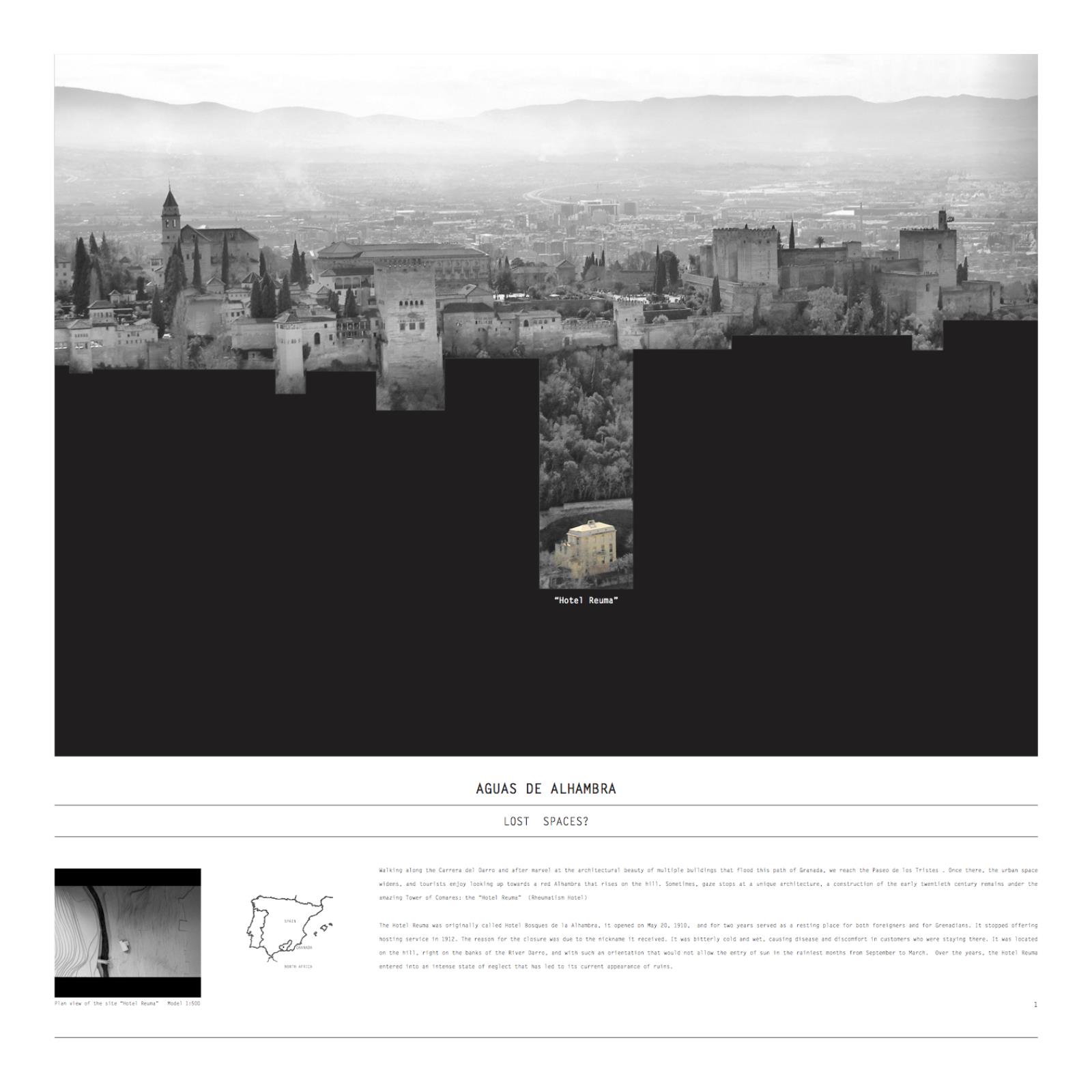 “Aguas de Alhambra” Part 1 Project 2016 Leonardo Castro Paredes University of East London London | UK The proposal, located in Granada, brings back to life an abandoned site that has been isolated for a century due to adverse climate conditions causing humidity and darkness. By taking advantage of these conditions instead of going against them, I propose to convert the existing building into public baths enhancing water, nature and historical architecture - an alternative to the other sunny 'side' of the river, devoted to tourism. Tutor(s) Isaac Cobo i Displas Mrs Claude Saint-Arroman