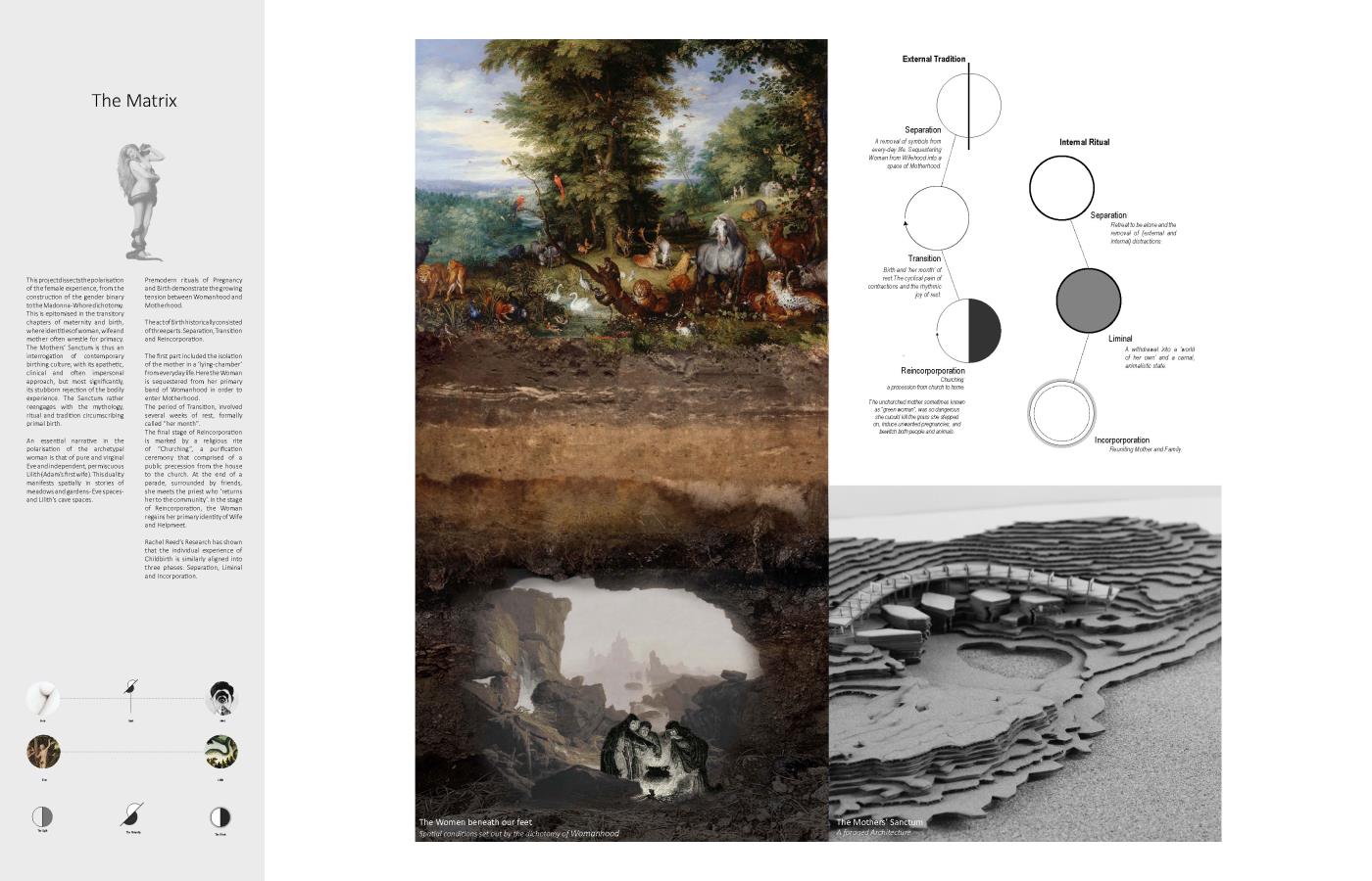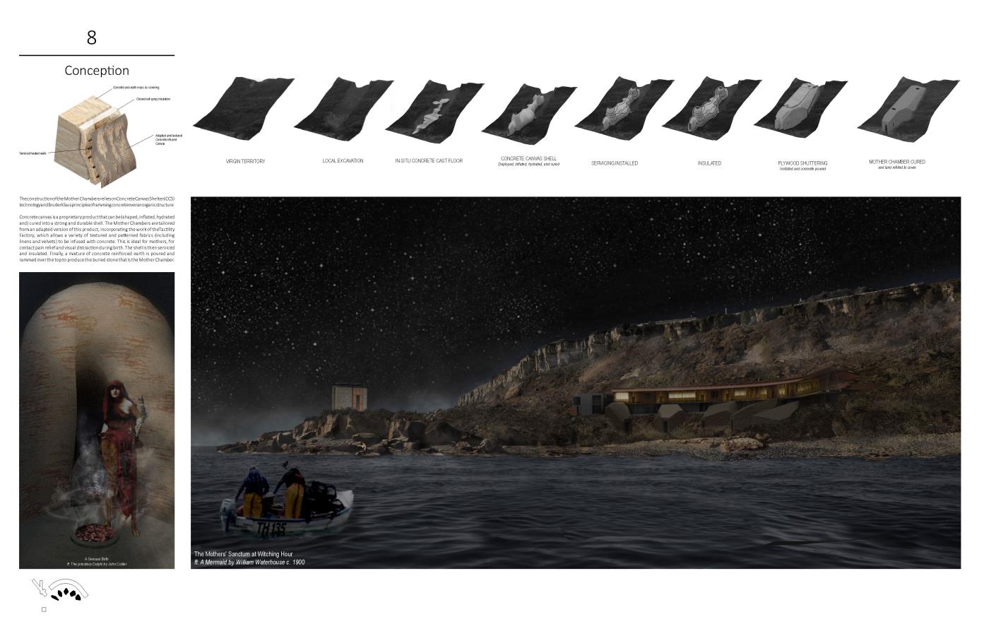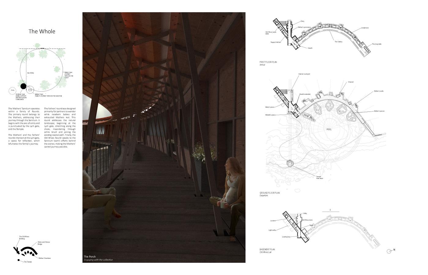 Mothers’ Sanctum Part 1 Project 2018 Sasha Mckinlay University of Bath | UK The Mothers’ Sanctum is an interrogation of contemporary birthing culture, and particularly its stubborn rejection of the bodily experience. This project reengages with the mythology, ritual and tradition circumscribing primal birth to amplify this extraordinary phenomenon. The resulting retreat is nestled into the elemental coast of Portland, primarily consisting of a communal longhouse and a necklace of anthropomorphic birthing chambers, which stand tribute to the unique journey of birth. Tutor(s) Jayne Barlow