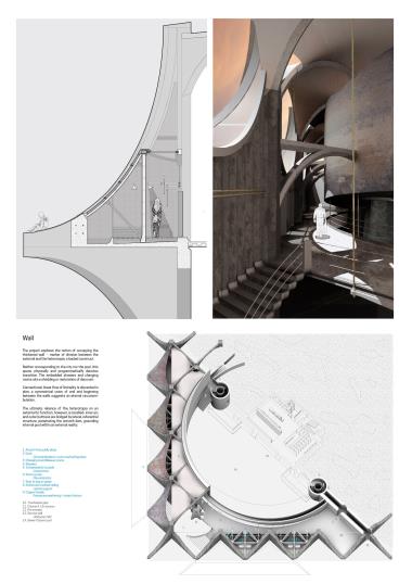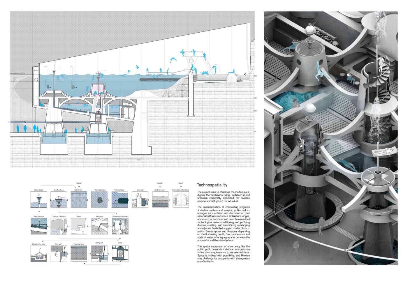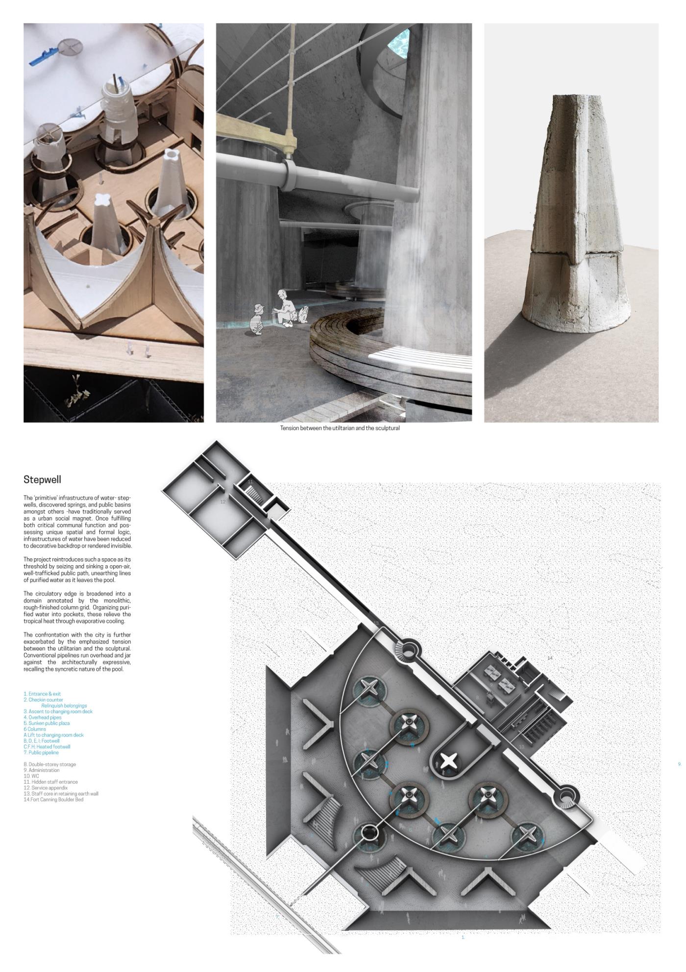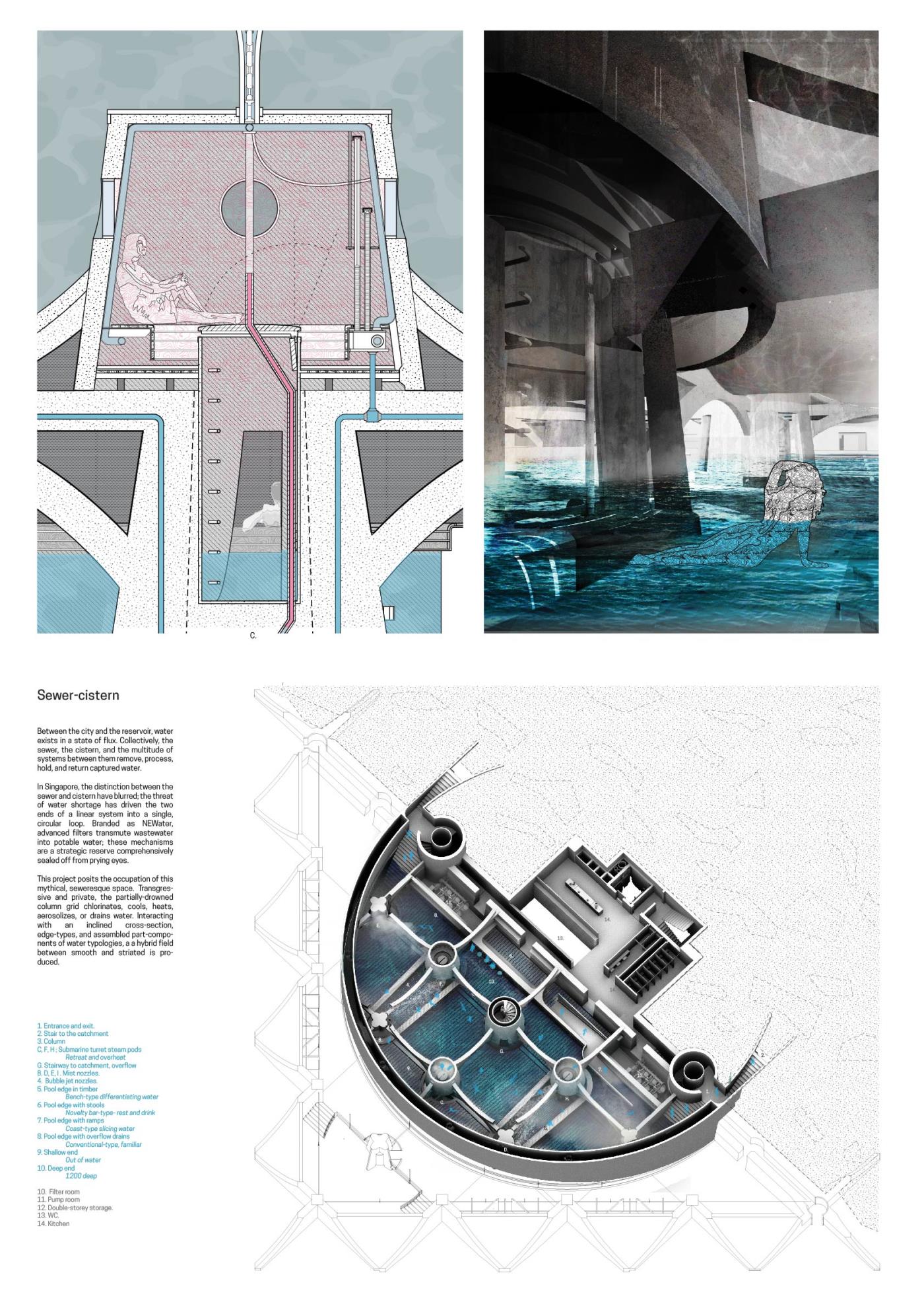 Idio-syncretic Waterscapes Part 1 Project 2019 Yong Chern Goi National University of Singapore | Singapore In the post-independence scramble for survival, an emergent Singapore has recast itself as a paragon of prudent policy.Its success has been a strange, recursive paradox- dependent on the continual manufacture of this image of success to a global audience of state, corporate, and individual actors. A city-state with no hinterland, it is entirely dependent on its own depiction to survive. The form of the physical city is thus irrevocably overwritten in the quest to identify and market an idealised self-representation.Fort Canning Hill, like the waterfront once overlooked, has thus fallen victim to hyperlegibility. Once a heterogeneous site of complex and contradiction, its rich cultural, political, and architectural topography has been flattened into an inoffensive, sterile projection of heritage.This project posits the reopening of the old swimming pool at Fort Canning in the form of occupable infrastructure, to reclaim for the public domain a refuge - a part of the richer space of a messier past.This symbolic, idiomatic and utilitarian superimposition hopes, in integrating with the wider systems of the city, to disrupt the established, unquestioned methods that govern urban order. Tutor(s) Prof. John Chye Fung