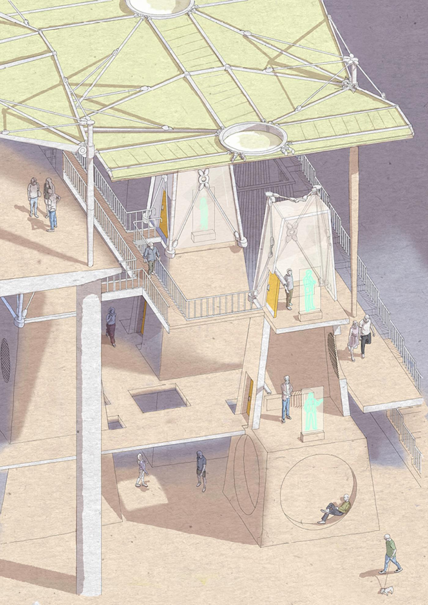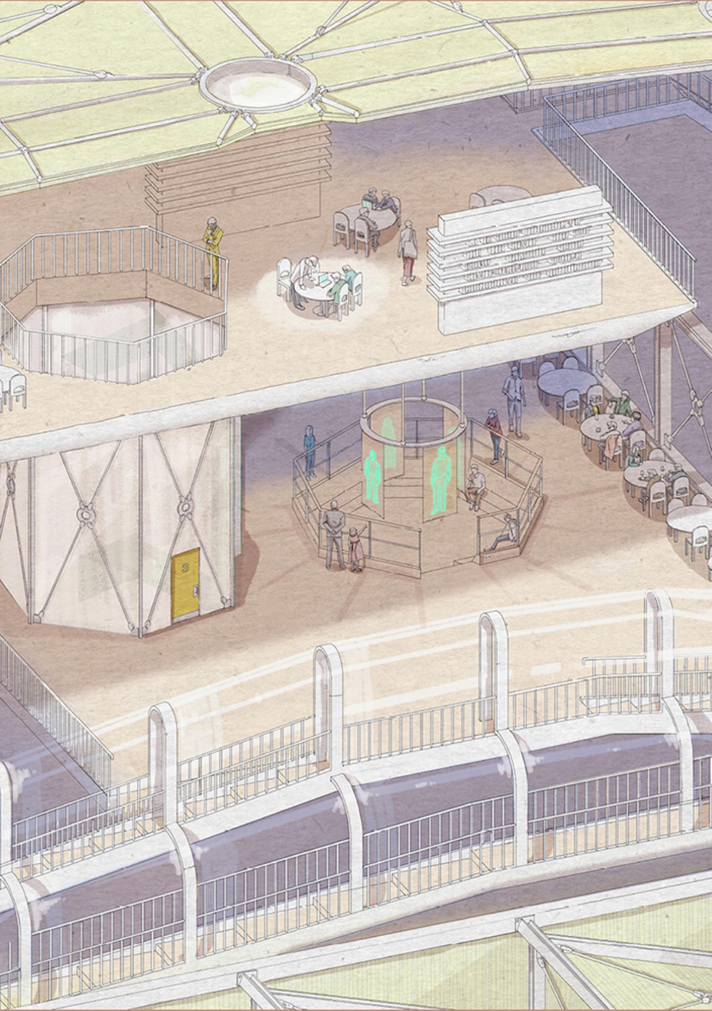 Decibel 60: Immigration Checkpoint Part 1 Project 2019 Alex Ferragu Liverpool John Moores University Liverpool | UK On the 23rd of June 2016, the United Kingdom decided to leave the European Union (EU), the UK imposes an imaginary border all around the country, allowing architectural responses at every point of entry to the country.Although the nature of a checkpoint is to control the provenance of entering visitors, it can also be seen as a pleasant gateway to the country. There, the visitors will be audio-visually recorded as they physically enter the country. The choice of topic for this recording is free to the narrator to decide. These recordings will be converted into files which will then be projected onto glass panels of human size, creating a holographic-like display arranged in a maze-like space open to visitors. An archive of all the recordings made can be consulted in the library space, which is a source one in the domain of a research.Decibel 60 will also encourage the development of language in conjunction with the sharing of information. The holographic-like projections represent more than an artistic light display, it is a physical manifestation of the passage of a visitor to Liverpool, the sharing of an experience. Tutor(s) Aliki-Myrto Perysinaki