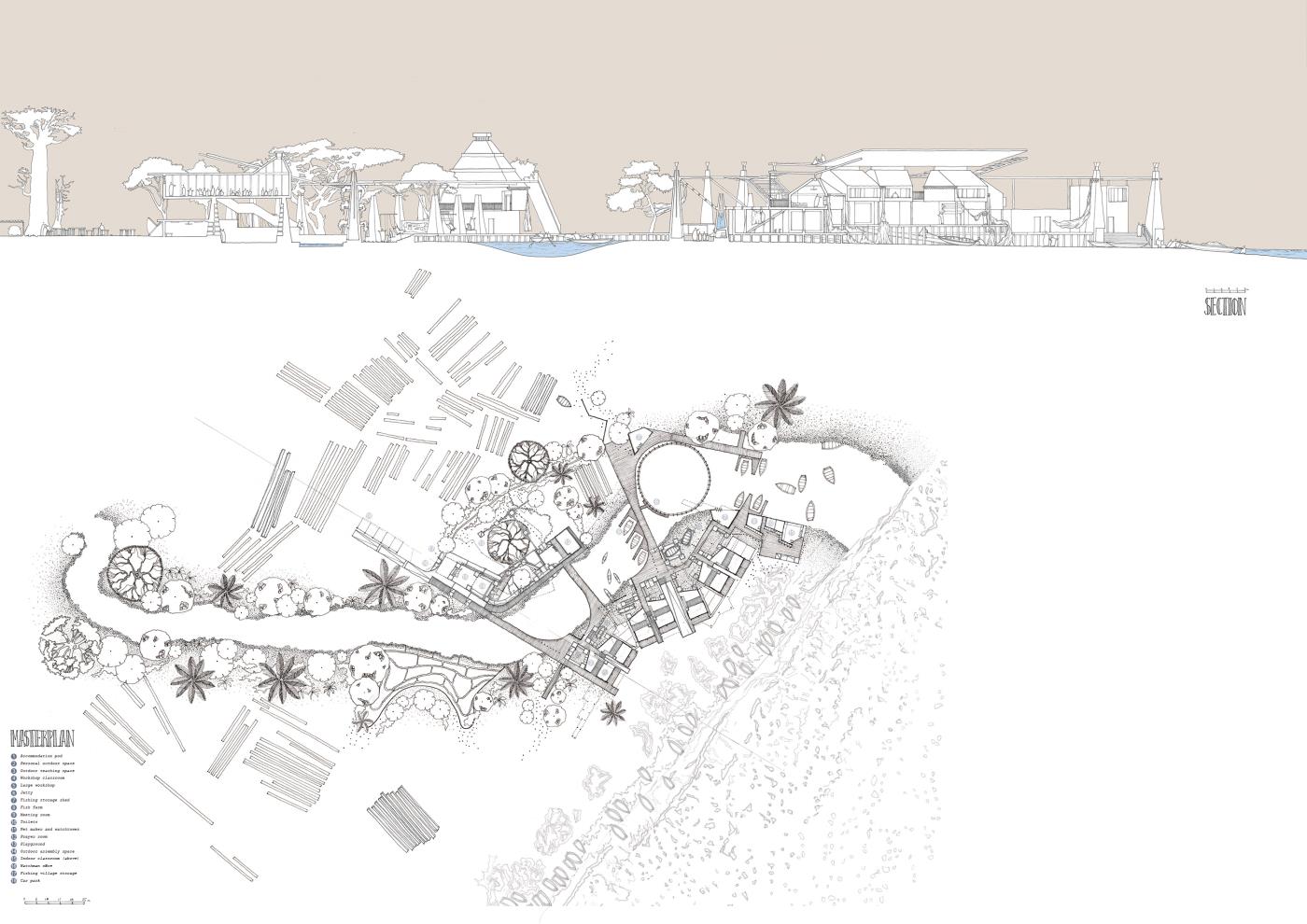 ‘Salima Laketown’ is an architectural proposal which aims to address this ‘Brain Drain’ of skills and resources. As a public activity space and extension to the fishing village, it provides accommodation for resident teachers, and boat workshop and classroom spaces to act as a vocational education village aiming to teach children and local workers how to operate about their trades safely and sustainably, thus retaining their talent and ensuring the preservation of the lake environment and its ecosystems.