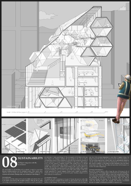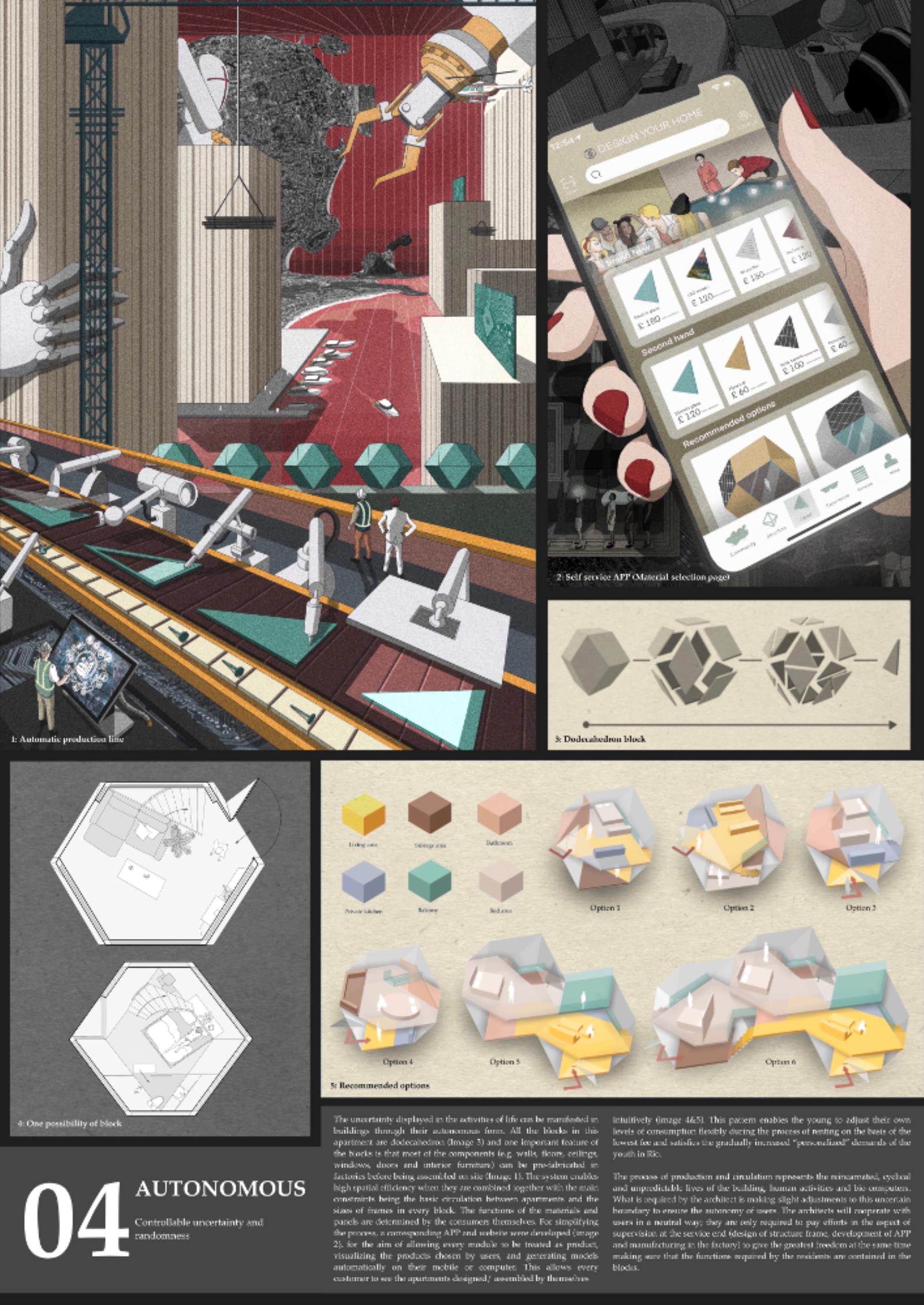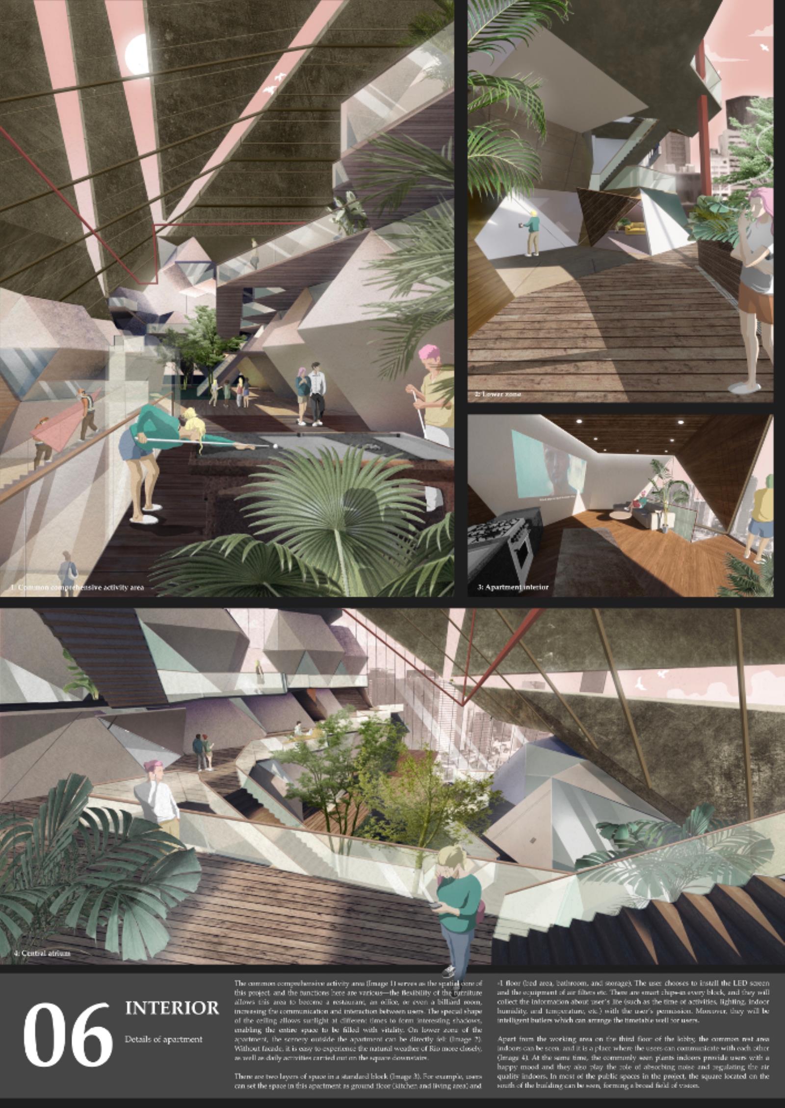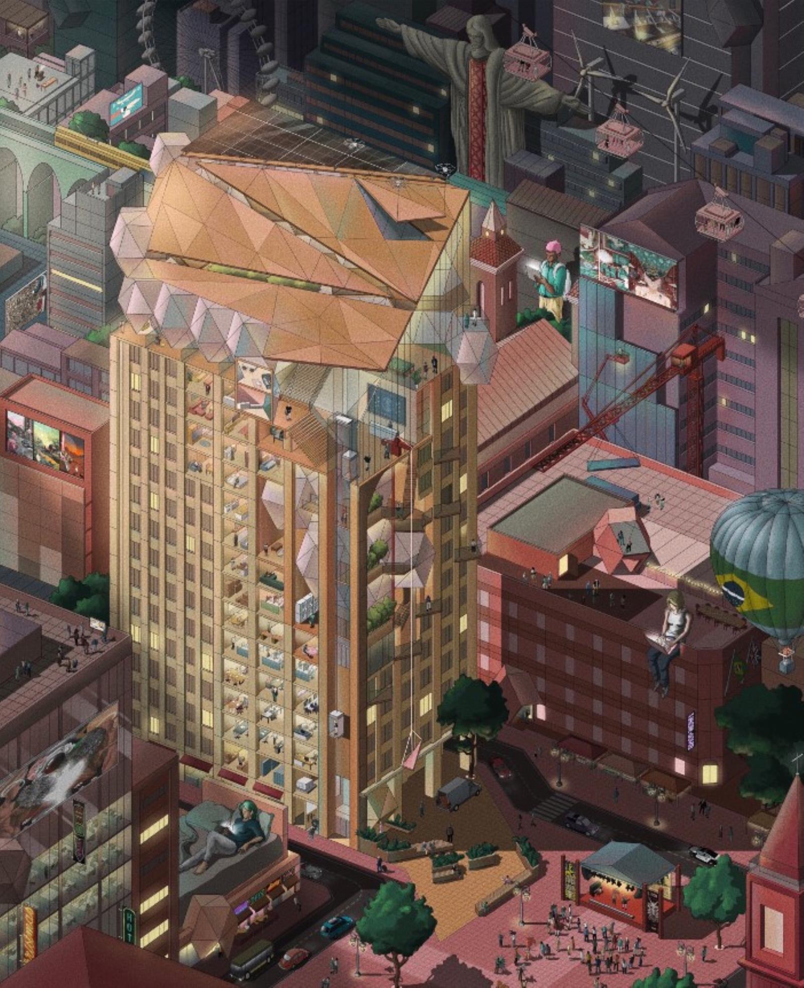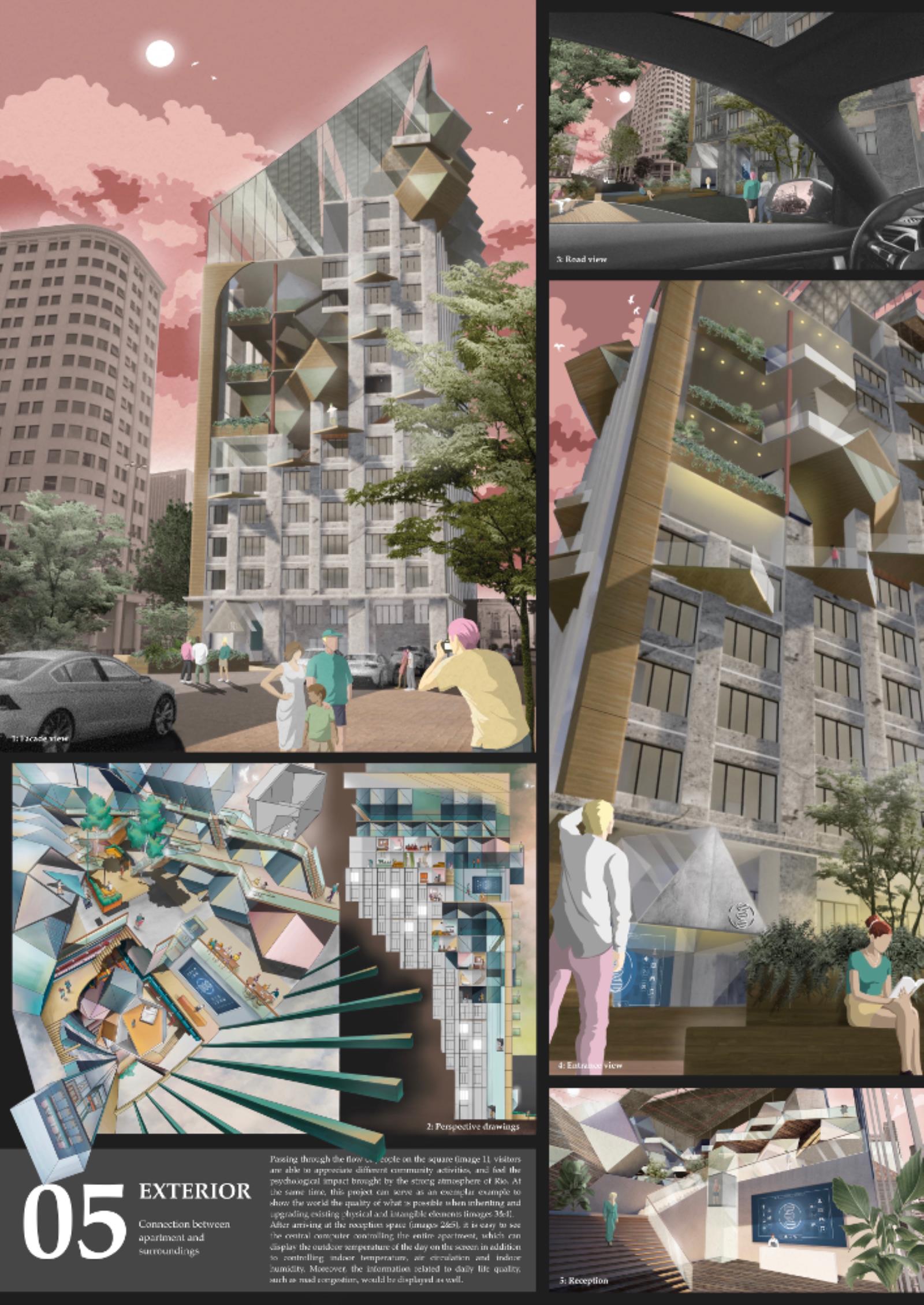 With “bio-computer” as the basic concept, this project is about the refurbishment and extension of a concrete frame building in Rio de Janeiro, enabling the newly built part to be an apartment complex developed to reveal a key characteristic of Rio — connection. As a supercomputer that uses biology as the medium for information transmission, bio-computer reveals the key to connection in the scale of a building – individuals. Users are deemed as the main carriers for the generation, transportation, and storage of information. Among these individuals, the young, who are equitable to the most dynamic DNA chain in a bio- computer, are also very fragile, and they are subject to the deepest influence imposed by the housing crisis. Therefore, the project is aimed at developing an affordable housing option for the young. The design allows users to customise every room to express their personality and the building material can be purchased freely with the use of a prefabricated system. With the renovation of an existing building, it displays the contrast between new rules and old rules, as well as the connection and interaction between the new and the old.