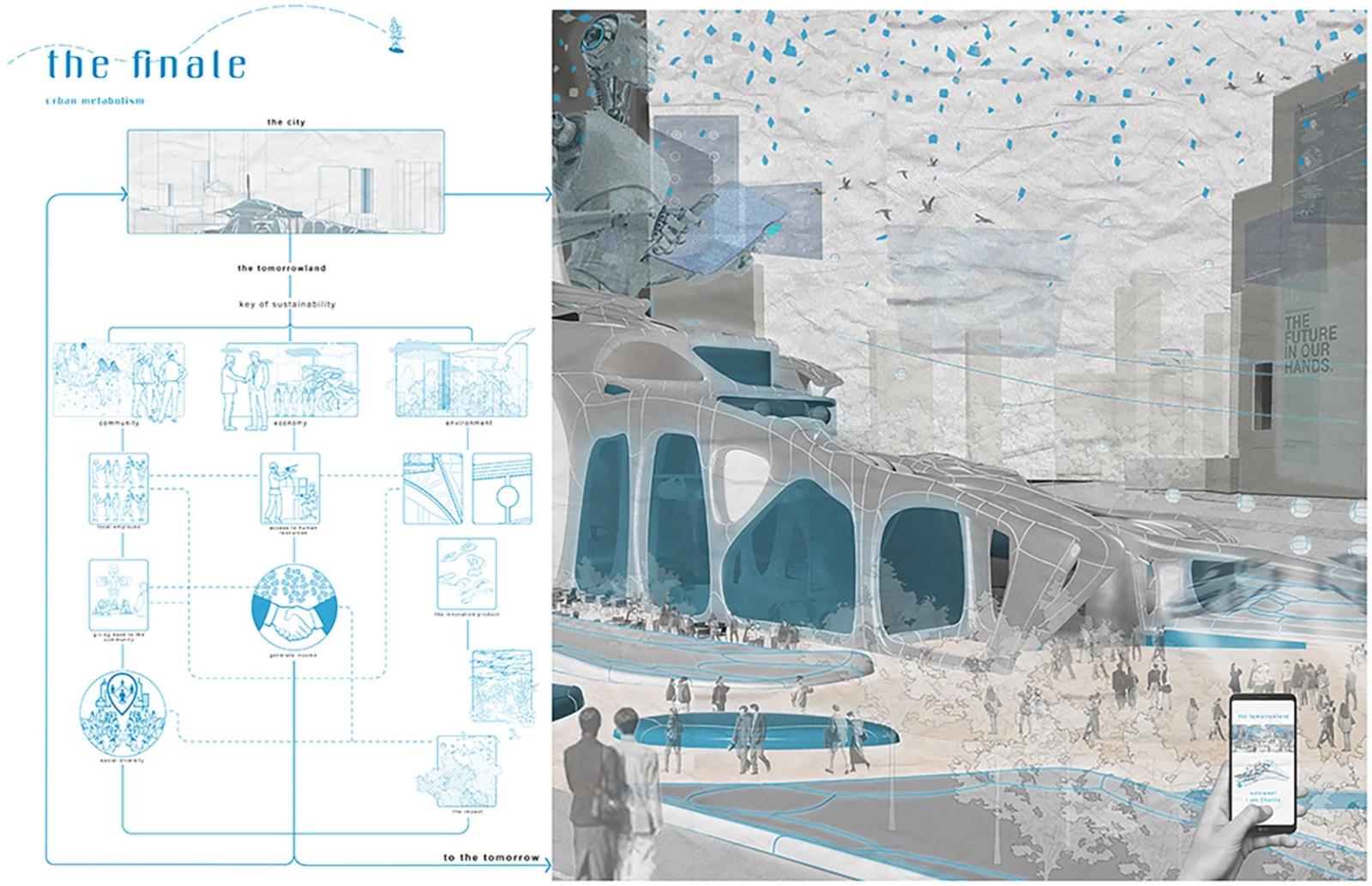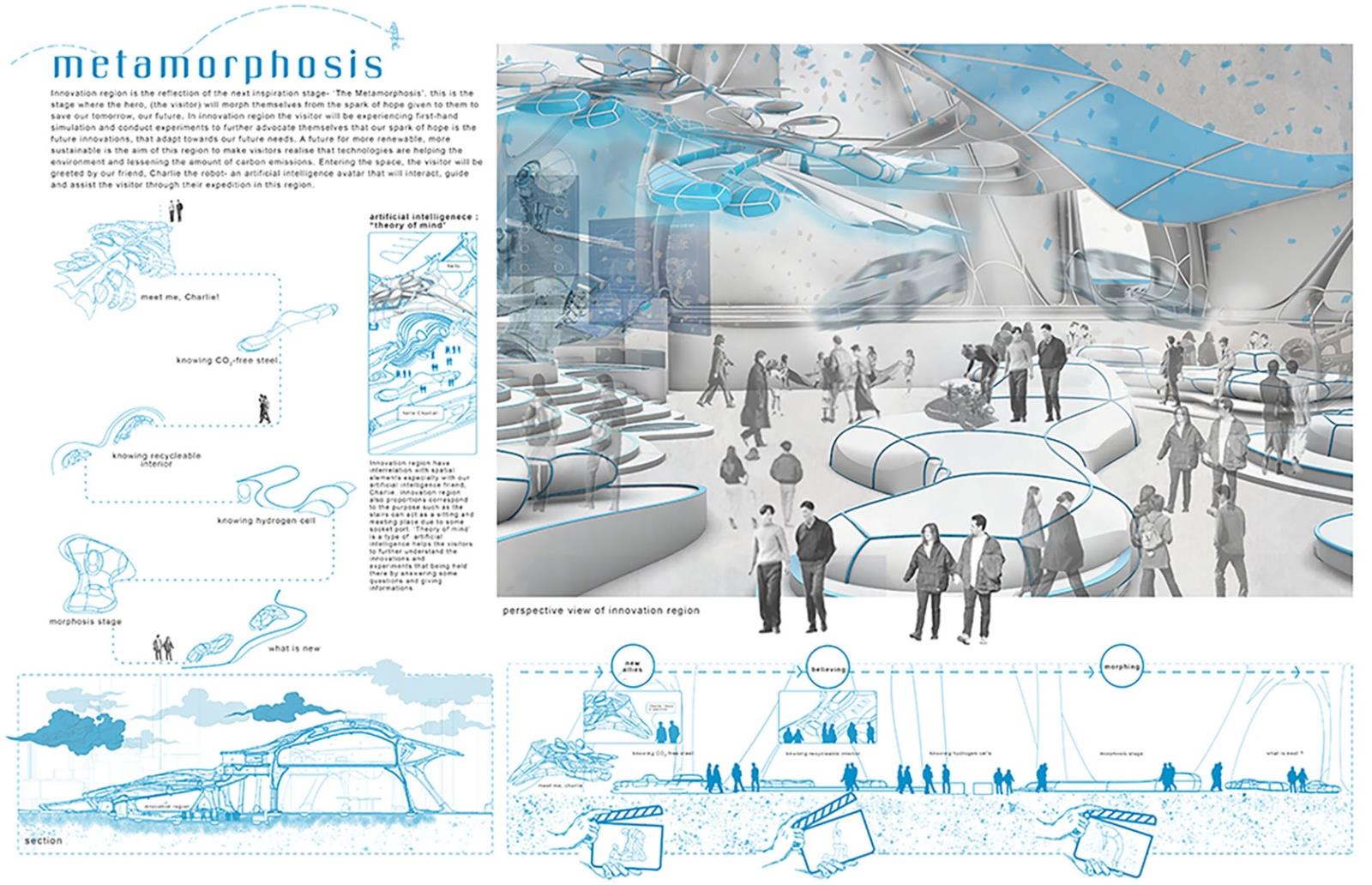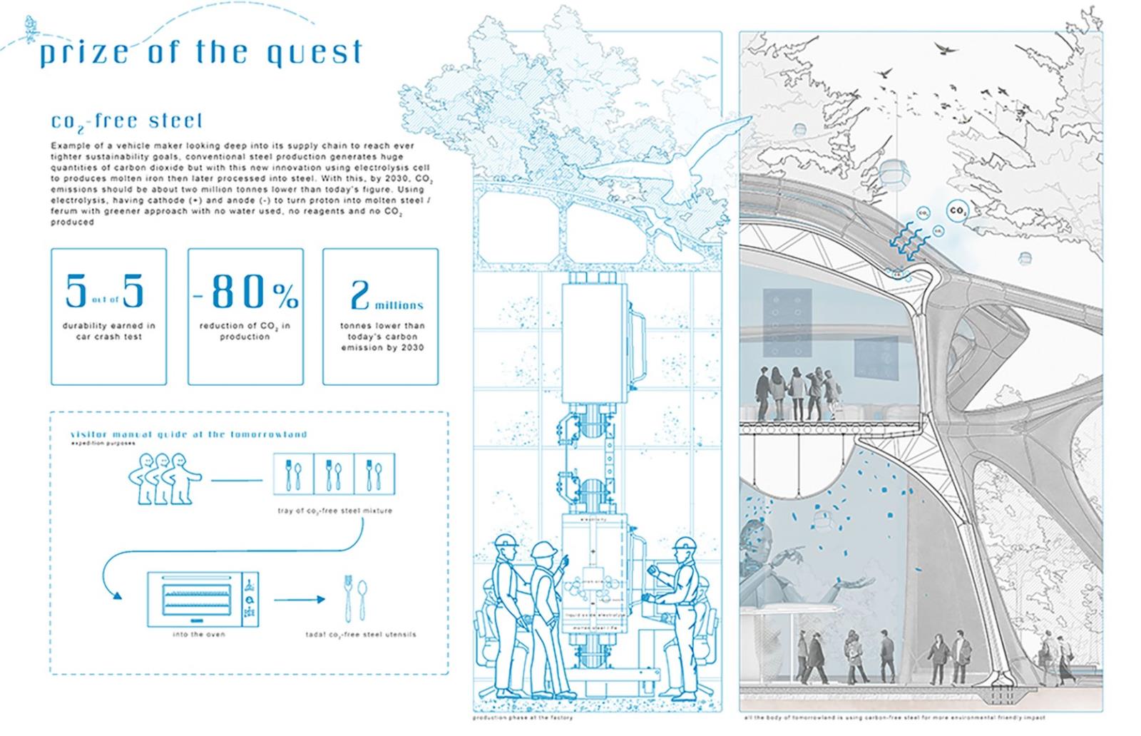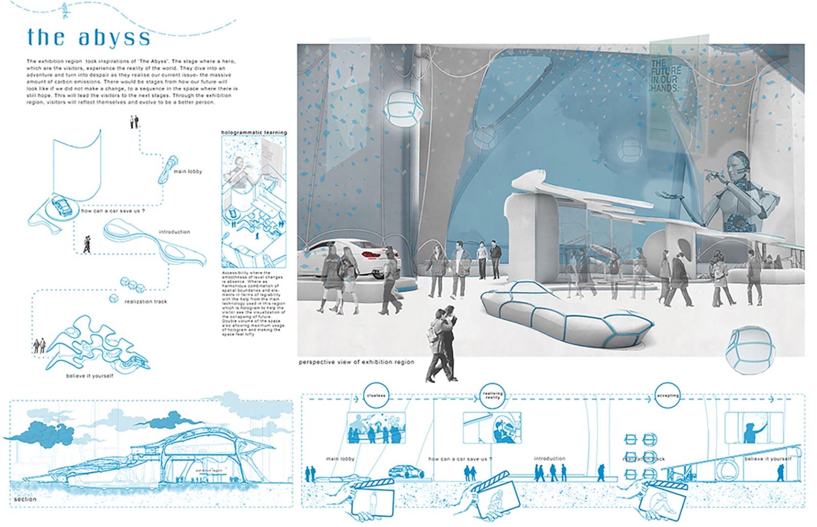 The narration is inspired by Joseph Campbell’s “The Hero’s Journey”, the adventures of a pilgrim- turning-a hero. This odyssey and philosophises written over the journey of today’s cities unlocked potential to provide a better tomorrow. Visitors will indulge in a fictional journey displayed by the hero on a proposed tangible design solution here in Tomorrowland.