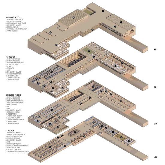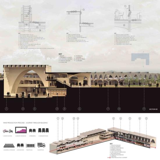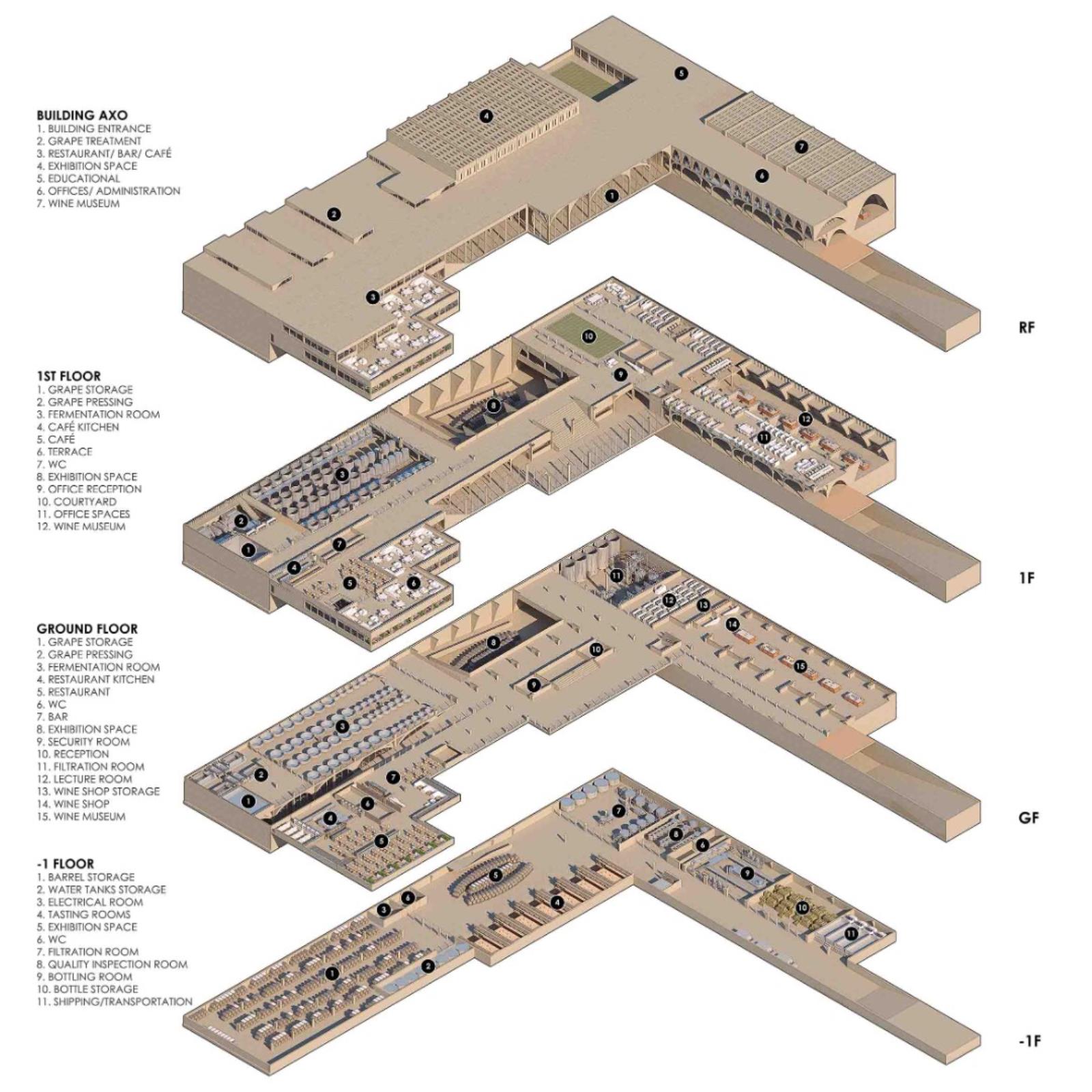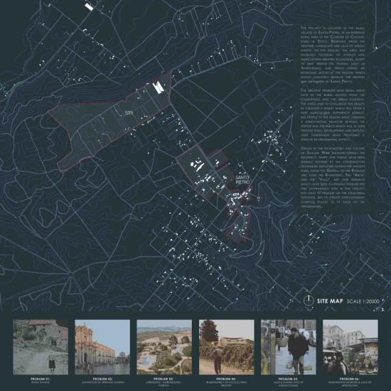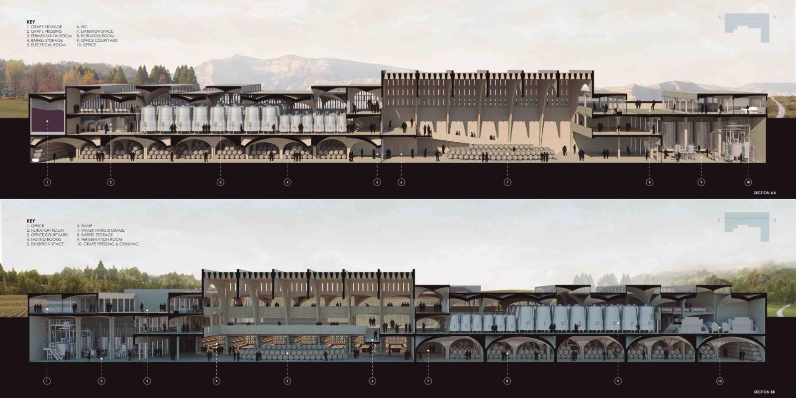 Santo Pietro’s Winery Part 2 Project 2021 Raul Mormeneo Colomer University of East London London | UK The project is located in the small village of Santo Pietro, in an extensive rural area in the Comune of Caltagirone in Sicily. Benefited from the weather, landscape and lack of urbanization on the region, the area has excellent potential to attract new agricultural related economies, adapt to new trends on tourism such as Agriturismo, and hence create an economic boost in the region which would ultimately develop the growth and expansion of Santo Prieto.The greatest problem most rural areas face is the rural-urban migration. The thesis aims to challenge this reality offering a pure agricultural experience, attracting people to the region while creating a long-lasting relationship between the visitor and the place and in turn provide rural development and employment generation while providing a positive environmental impact.Driven by the rich history and culture of Sicilian Wine manufacturing, the building’s shape and forms have been sensibly inspired by the construction techniques employed since the ancient times, from the Greeks, up to the Baroque. The ‘Arch’ and the ‘Vault’ are two elements which have been cautiously researched and experimented with in this project notonly for structural purposes, but to create extraordinary complex spaces to fit every programme. Tutor(s) Carlo Cappai Maria Alessandra Segantini
