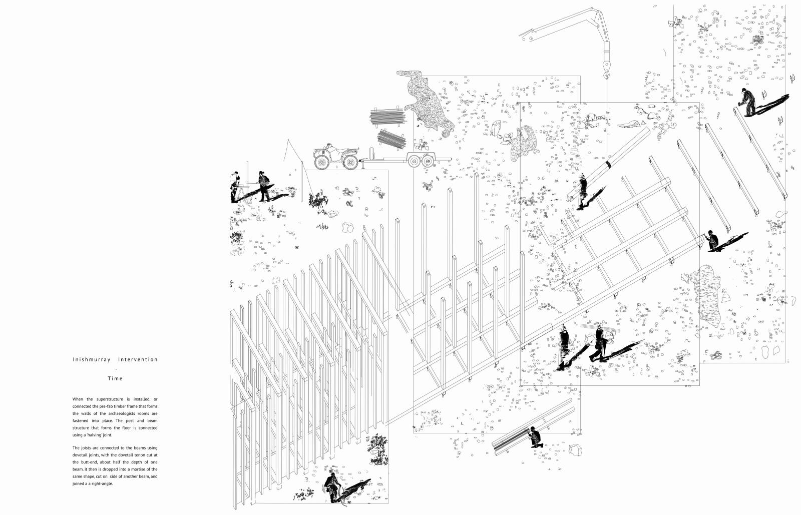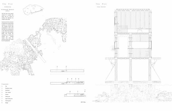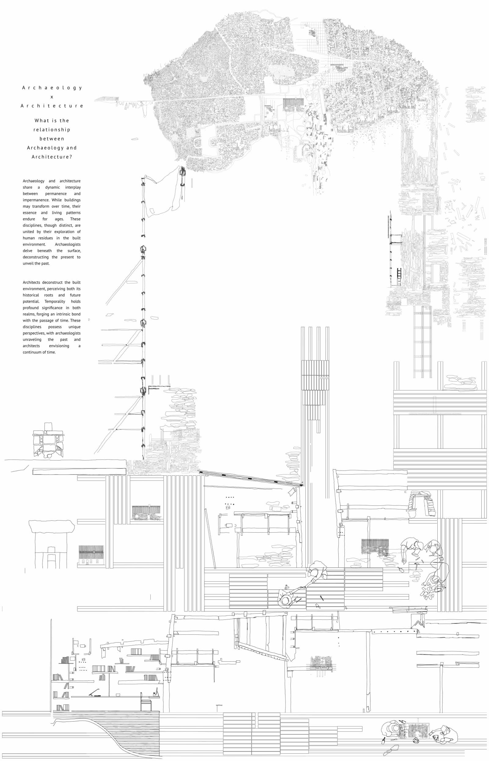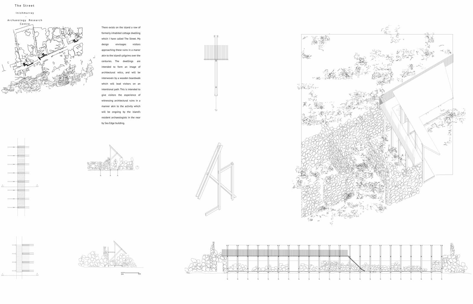 How Can Architecture and Archaeology Be Deployed in Tandem to Reestablish a Human Presence on the Island of lnishmurray? Part 2 Project 2023 Amar Chekchak Ulster University | UK My thesis is a project focused on the historic island of lnishmurray off the northwest coast of Ireland. The island's rich archaeologicaldepth and historical character have been vastly under appreciated, despite the presence of a 6th-century monastic settlement. My goal is to enhance the island's attraction as a destination for pilgrimage and nature enthusiasts while preserving its unique flora, fauna, and ancient structures. Recognising the need for conservation, I aimed to establish a balance between appreciation and preservation.Conceptualising the island as a palimpsest of past states, my project connects past and future through depicting the island's evolution over the centuries. Moreover, it establishes thematic links between archaeology and architecture, both of which interact with existing and potential environments. The central objective is to reestablish a living human presence on the island through an architectural intervention that respects and enhances its natural environment. To achieve this, I propose an archaeological research centre where visitors actively contribute to the excavation and preservation of the island's heritage. Each structure in the design corresponds to an existing element of the island's environment, ensuring a symbiotic relationship that honours and enhances the island's significance for visitors and potential residents alike.Finally, my project aims to honour the island's historical importance while fostering a sustainable human presence that coexists harmoniously with its natural surroundings. Tutor(s) Paul Clarke