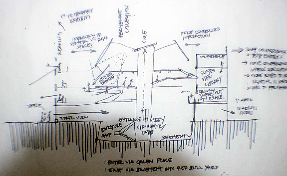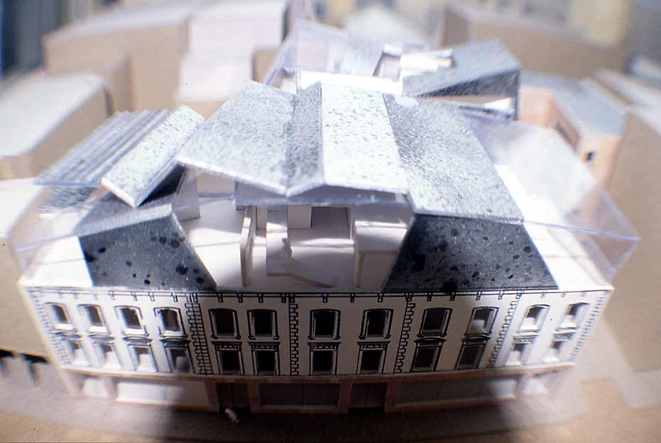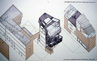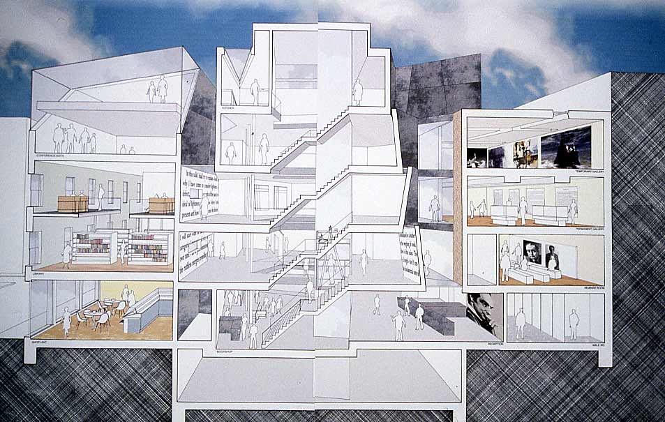 Italo Calvino: Institute For Studies And Gallery Part 1 Project 2002 Vanessa Lockett Cardiff University | UK Italo Calvino is an Italian journalist, short story writer and novelist and is considered one of the most important fiction writers in the 20th century. Both the content of his books and their narrative structure are based on the impossible task of dissecting the innumerable aspects of this world into small particles and units, or imposing an ending in a universe that ever creates itself afresh each instant. The site is a dense urban site situated in Bloomsbury close to the British Museum. The main function of the building is to display the work of artists that are influenced by the work of Calvino as well as the housing of conference, research and library facilities for writers, scholars and academics who use this place to study his fictions. The integration of the listed façade on Bury Place was given particular attention in the design of the new building.The design is a tribute to Calvino that not only exists to display his work but also embodies his life and encourages his spirit to endure new generations. Axes based on his place of birth and life in relation to the site determine the grid and embed meaning into the route and form. The visitor enters on the birth axis and exits on the life axis, this route is symbolic of experiencing Calvino’s life. Regular and fragmentary elements juxtapose reflecting his interspliced writing style. The central block supports meandering circulation and casual display whilst the regular blocks are for prescribed functions. The visitor experiences Calvino’s writing as a translation into form. The aims of the teaching programme in third year of the BSc course focus on the successful integration of human, social, architectural and technical knowledge in response to a complex design brief. In addition to these objectives the project on Italo Calvino aimed at enabling students to embrace a wider cultural context and draw inspiration from the ideas in his literature. The student's project has successfully resolved these demands and is nominated for the following reasons:It establishes an integration of practical considerations along with a systematic and coherent approach to architectural language, building form and appearance.It sees beyond conventional functional considerations focusing on the overall role of the building and the impression it should leave to the visitor. It draws poetic expression from Calvino's work from the urban location to the programme. the route, space, lighting and materials and sees architecture as related to a wider context of events and ideas. These are addressed at all levels of the design process rather than planted superficially as sources of inspiration.Finally, its influence from existing architectural styles is a positive demonstration of an active engagement with contemporary architectural design and practice.