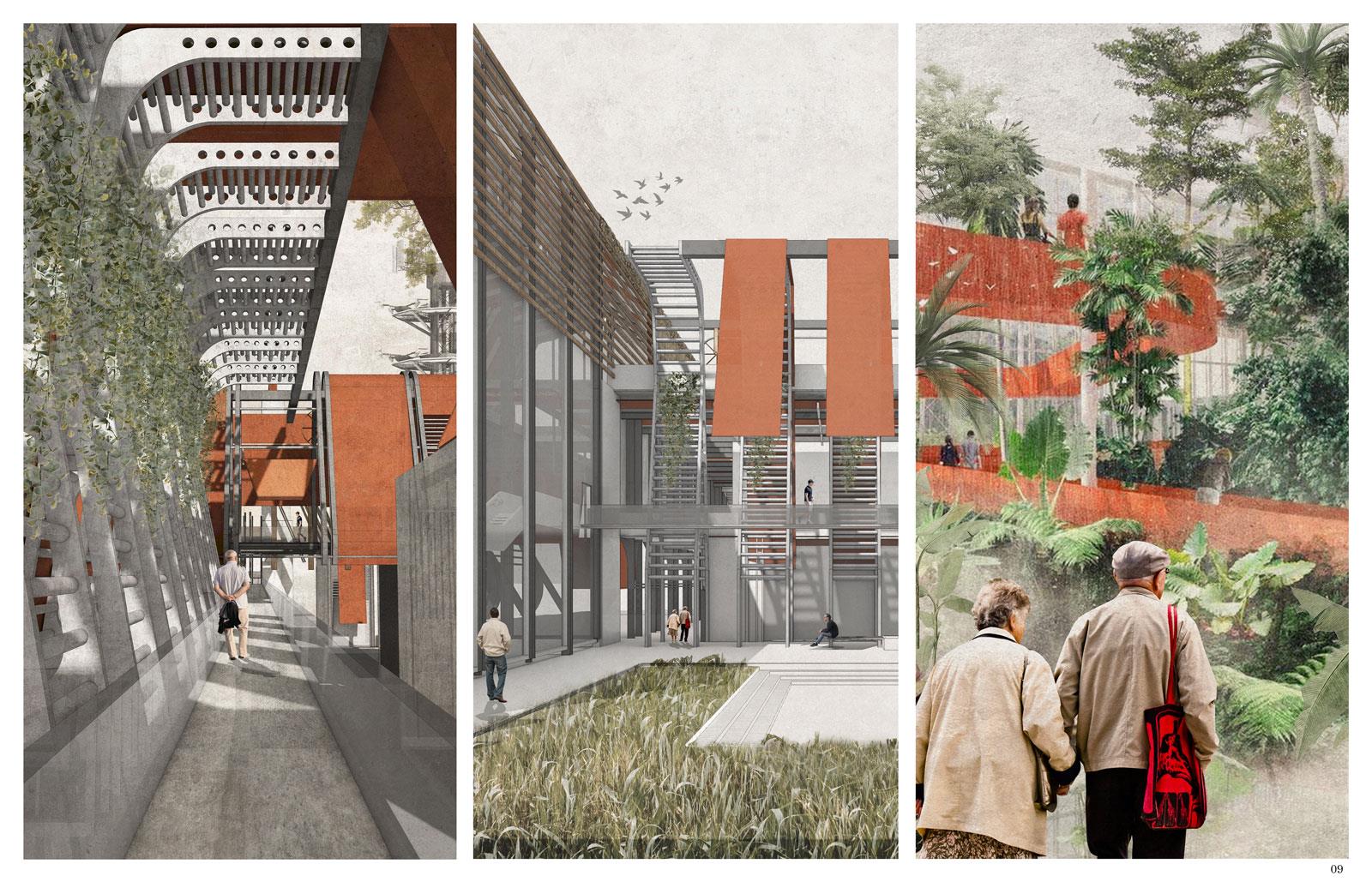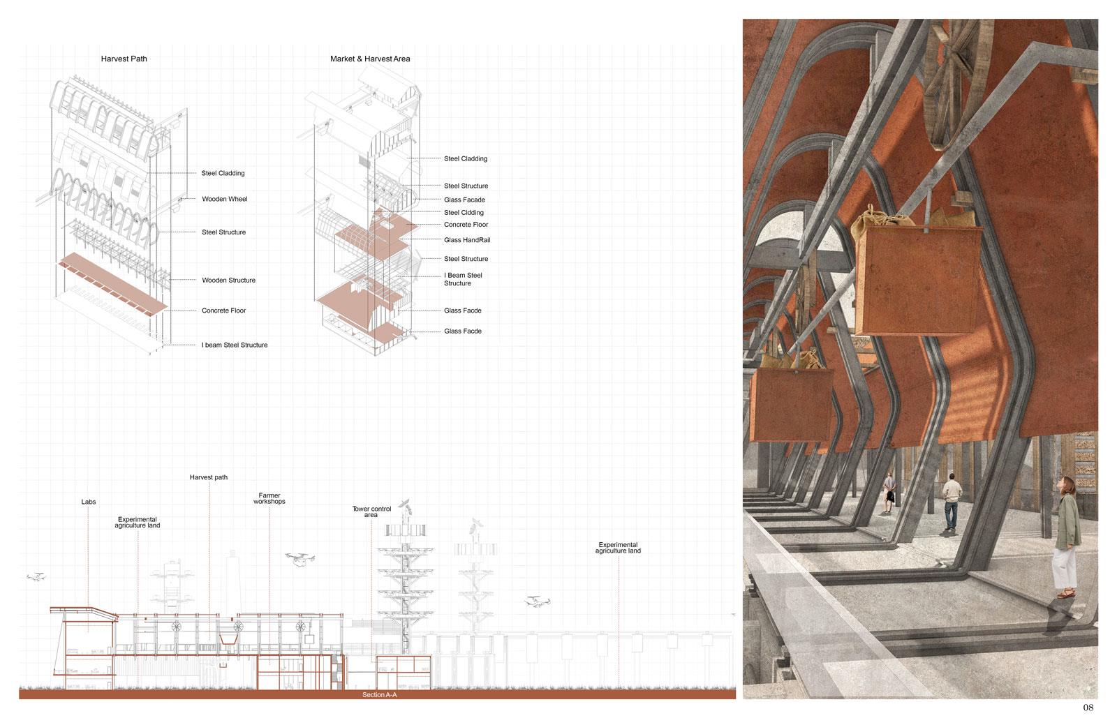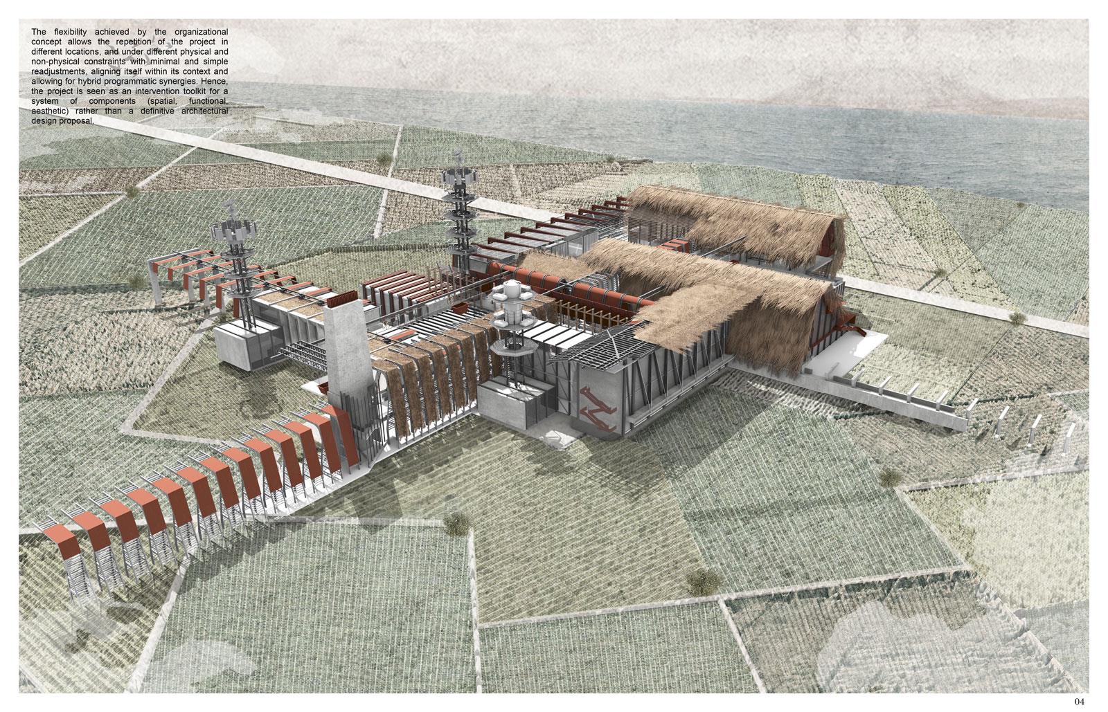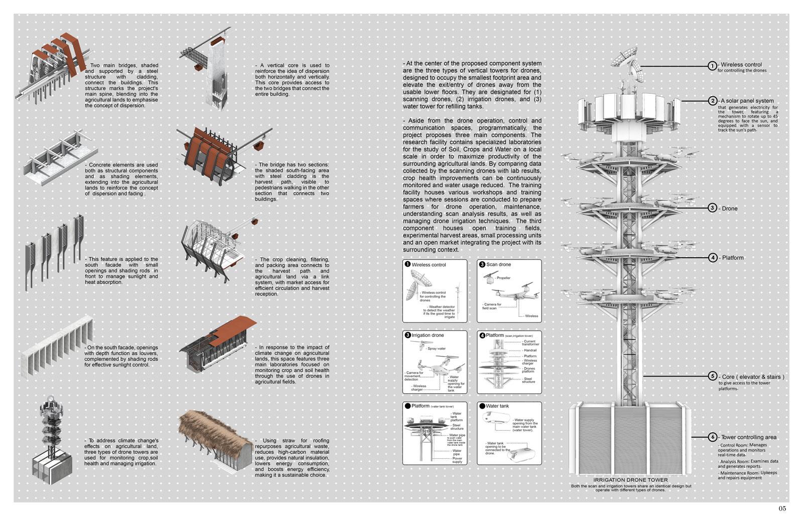 Beyond the River Part 2 Project 2024 Mai Nezar Arab Academy for Science, Technology & Maritime Transport - Smart Village Campus Cairo | Egypt For thousands of years, The Nile River has continued to flow as an abundant source of freshwater, providing rich, fertile and prosperous agricultural lands along its banks. However, in recent years, this vital resource has faced vast challenges due to overpopulation, shifting consumption patterns, and climate change. Rising temperatures, soil dryness, shifts in precipitation patterns and increased vulnerability to pests and diseases, pose increasing risks to crop sustainability, food security and the livelihoods of rural agricultural communities. To help mitigate the impacts of climate change on agricultural activity, the project proposes a decentralised network of sites along the Nile Valley for training, research and agricultural monitoring using the innovative and advanced technology of drone scanning. Recent advancements in drone scanning allow the monitoring of crop and soil health, managing crop disease and providing appropriate irrigation needs replacing water-intensive traditional methods.In addition to its central premise of embracing technological advancements for the betterment of farmers’ livelihoods amidst challenging environmental conditions, this project ultimately aims to create a more resilient agricultural framework across Egypt, empowering local communities to restore and support a long history of agricultural practice, mitigating the increasing effects of global climate change and simultaneously reviving Egypt’s agricultural heritage. Tutor(s) Mennat-Allah El-Husseiny